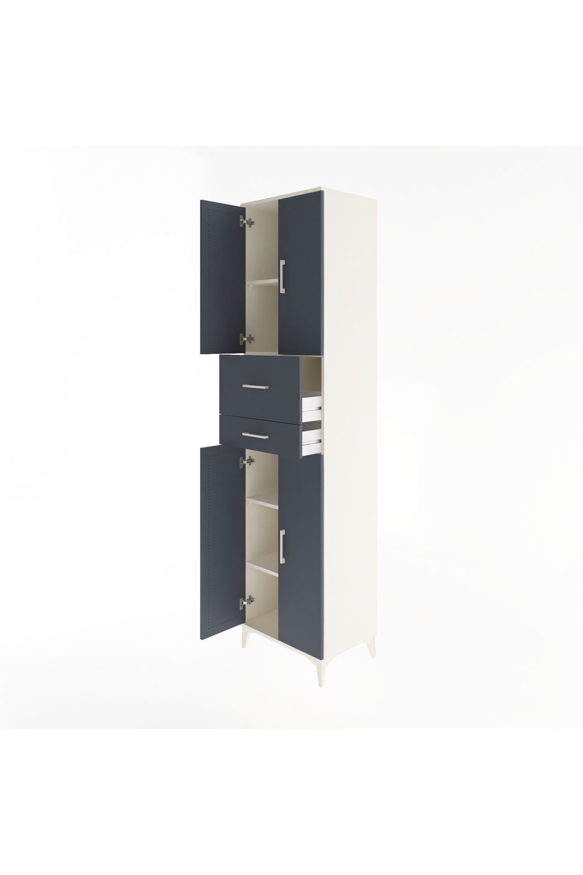 Hyperion Dolap 4 Raflı 2 Çekmeceli 4 Kapaklı 60x44x243 Aytaşı-Antrasit