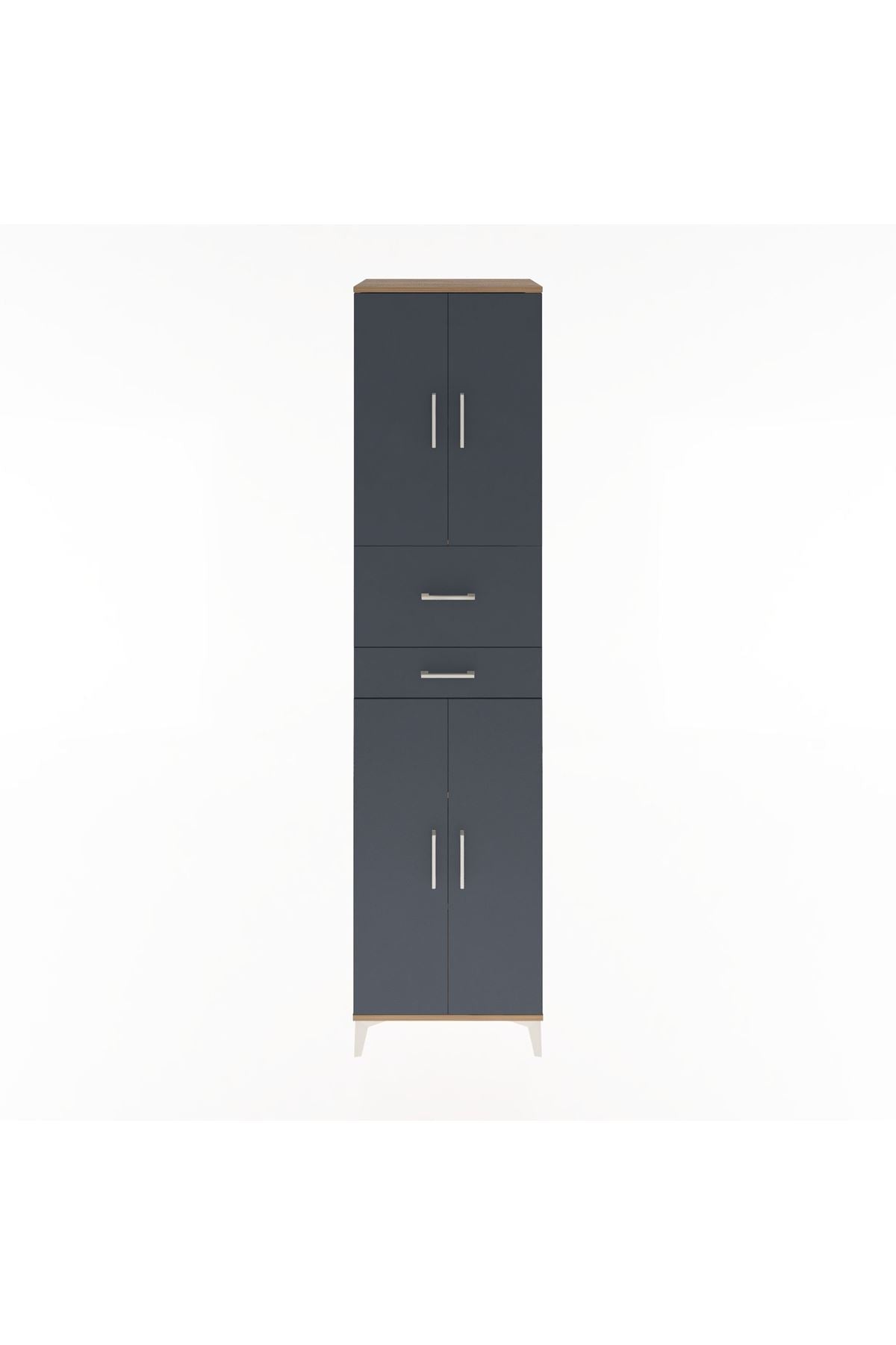 Hyperion Dolap 4 Raflı 2 Çekmeceli 4 Kapaklı 60x44x243 Çam-Antrasit