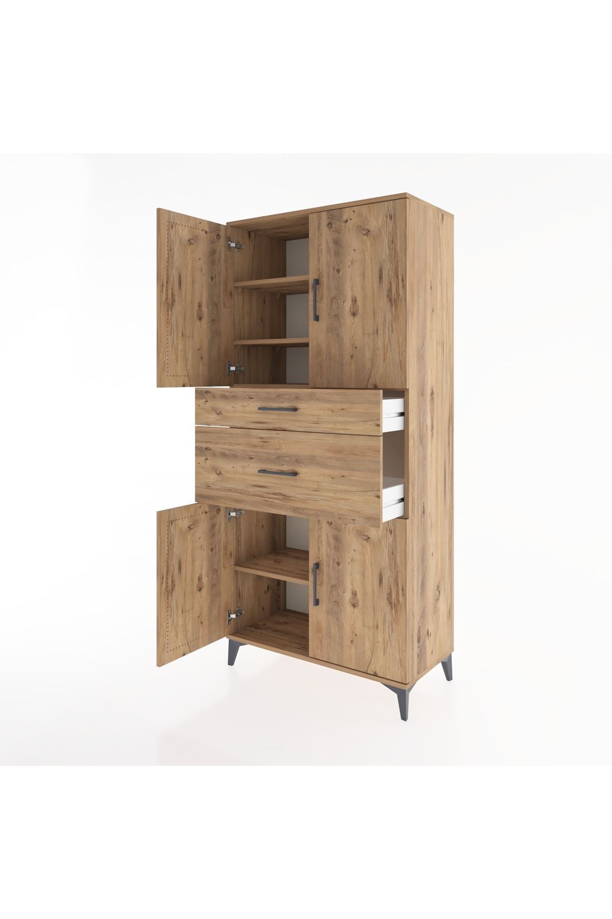 Hyperion Dolap 4 Raflı 2 Çekmeceli 4 Kapaklı 88x44x195 Çam-Çam