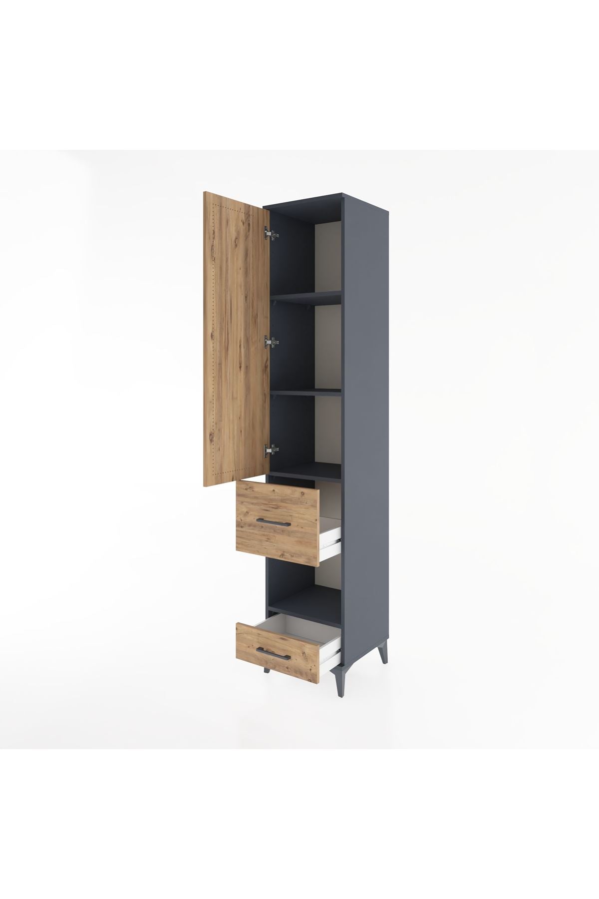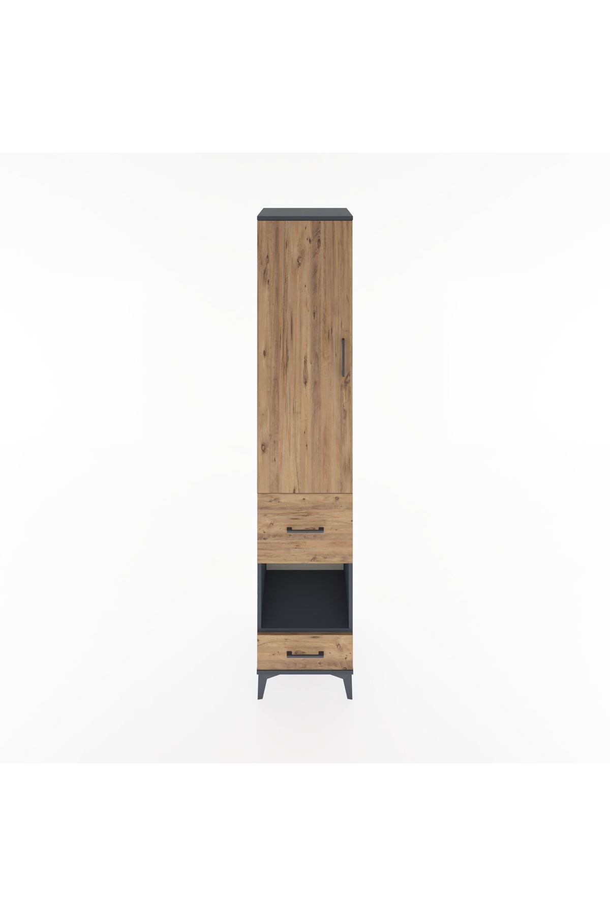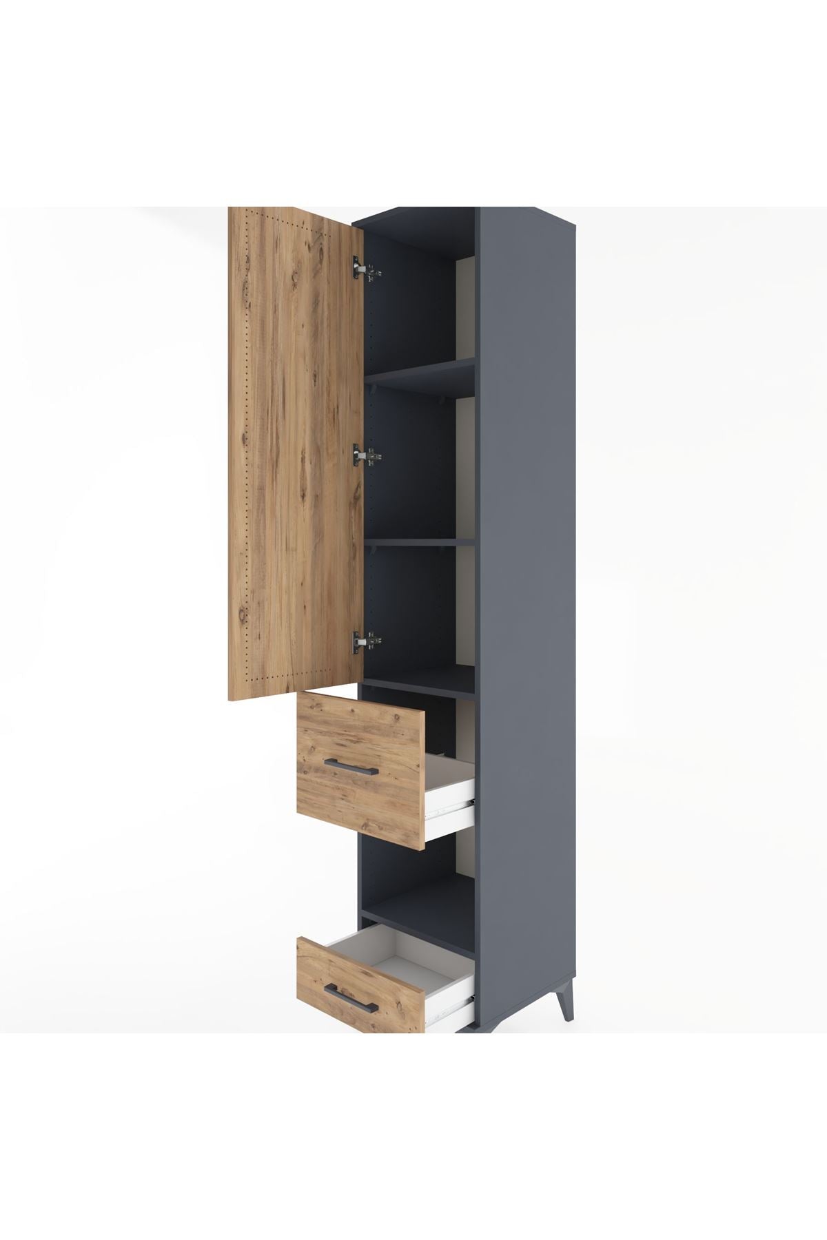 Hyperion Dolap 4 Raflı 2 Çekmeceli Tek Kapaklı 44x44x221 Antrasit-Çam