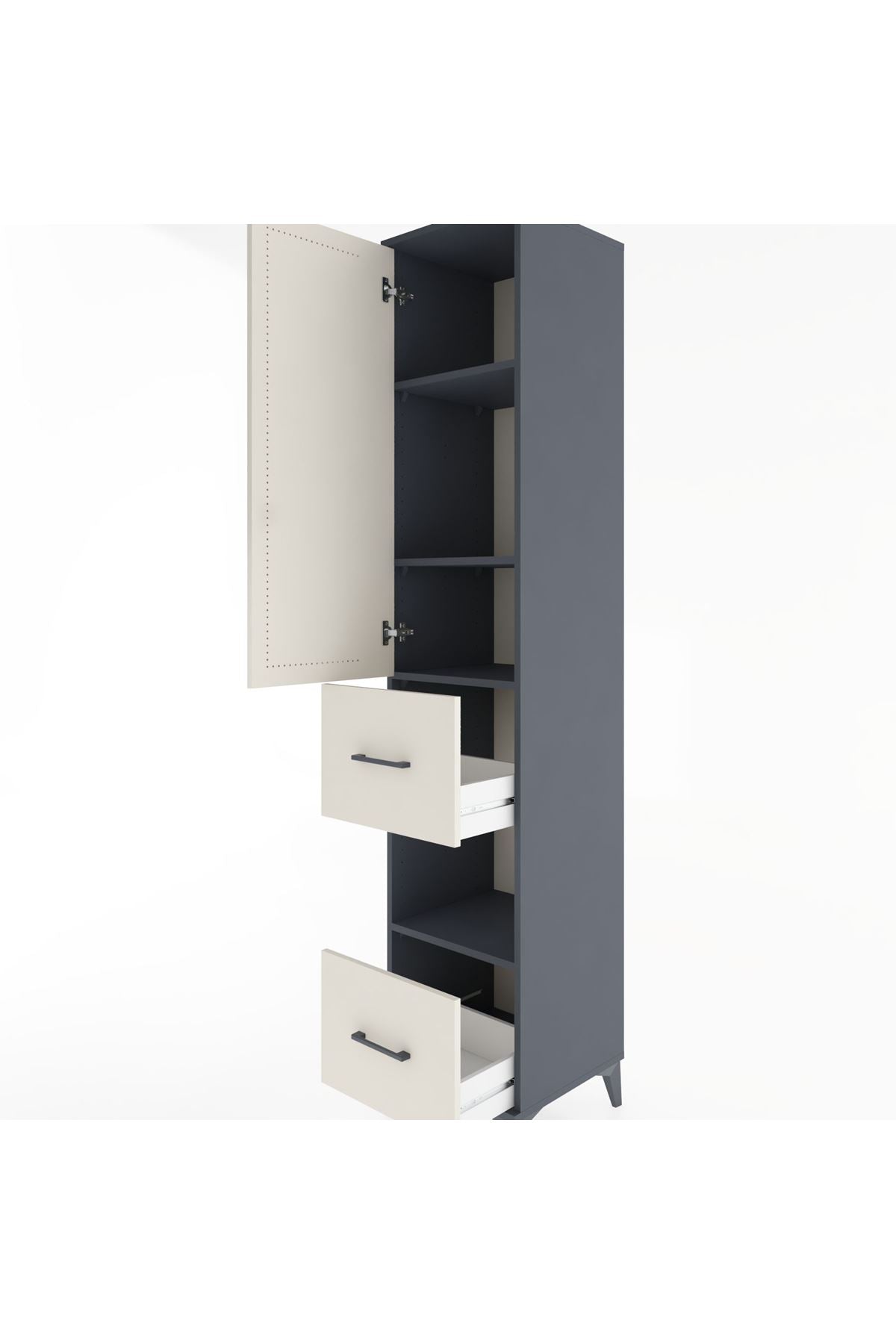 Hyperion Dolap 4 Raflı 2 Çekmeceli Tek Kapaklı 44x44x221 Antrasit-Aytaşı