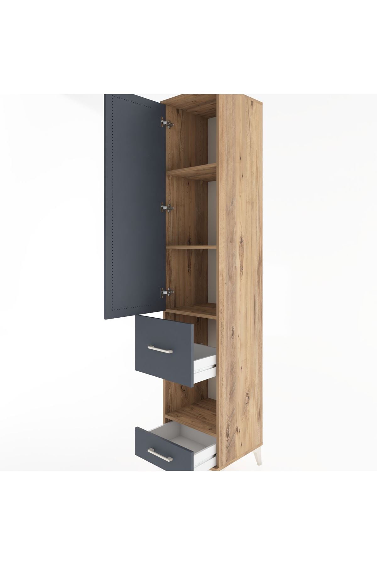Hyperion Dolap 4 Raflı 2 Çekmeceli Tek Kapaklı 44x44x221 Çam-Antrasit