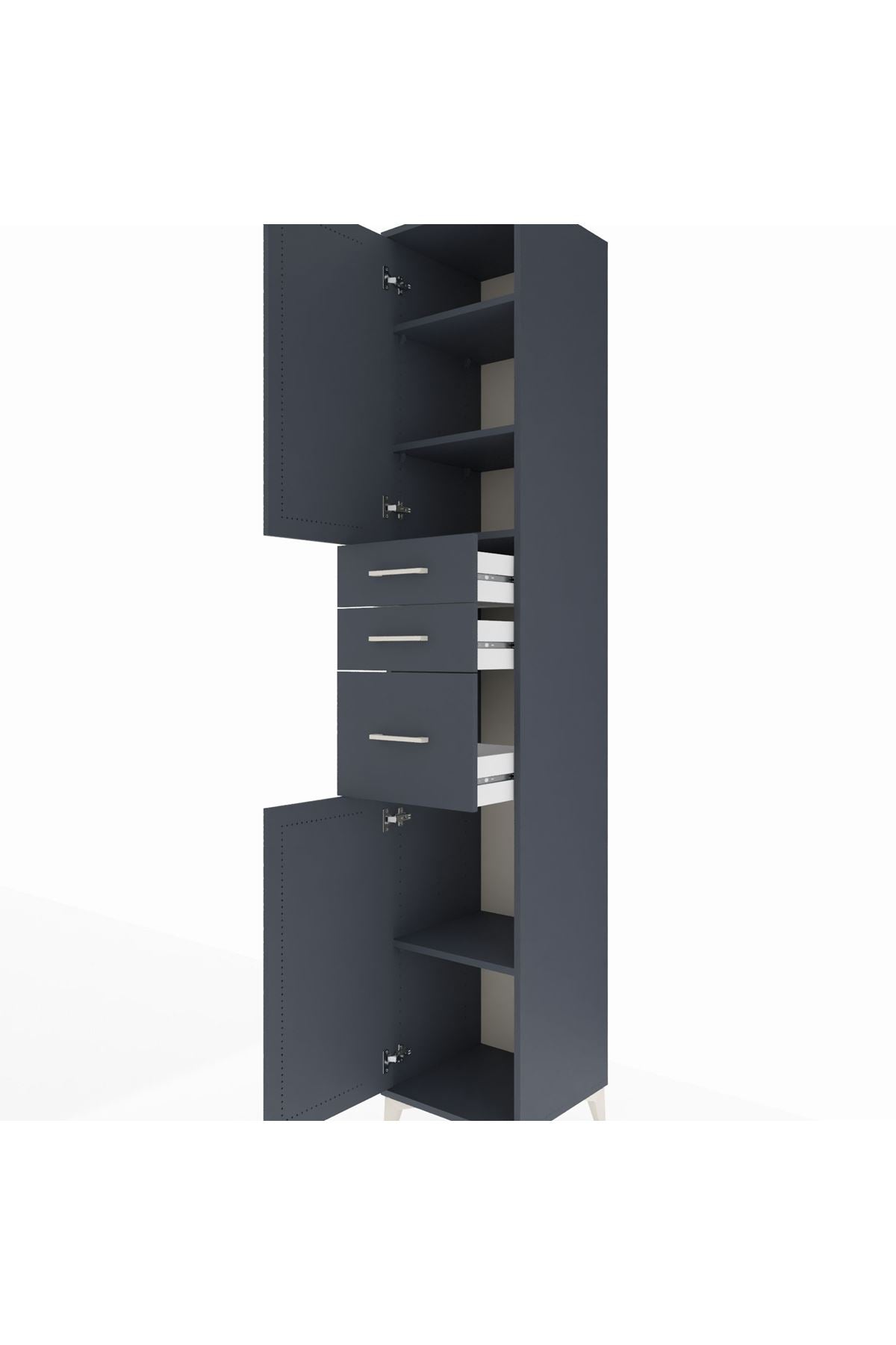 Hyperion Dolap 4 Raflı 3 Çekmeceli 2 Kapaklı 44x44x243 Antrasit-Antrasit