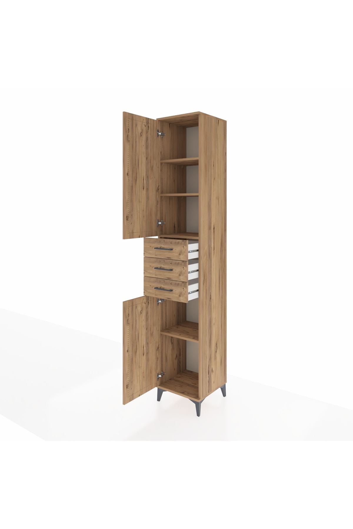Hyperion Dolap 4 Raflı 3 Çekmeceli 2 Kapaklı 44x44x243 Çam-Çam