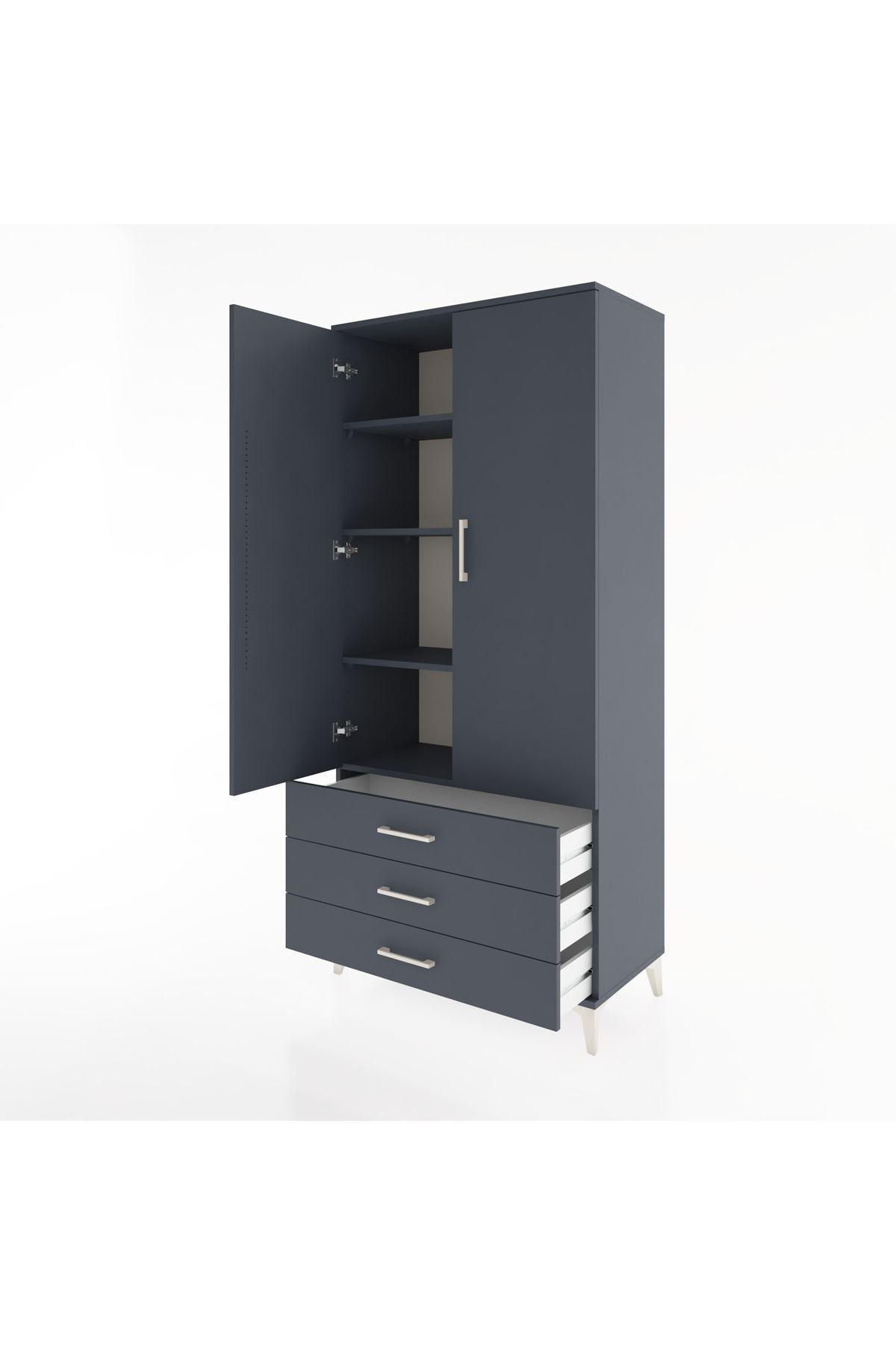 Hyperion Dolap 4 Raflı 3 Çekmeceli 2 Kapaklı 88x44x195 Antrasit-Antrasit