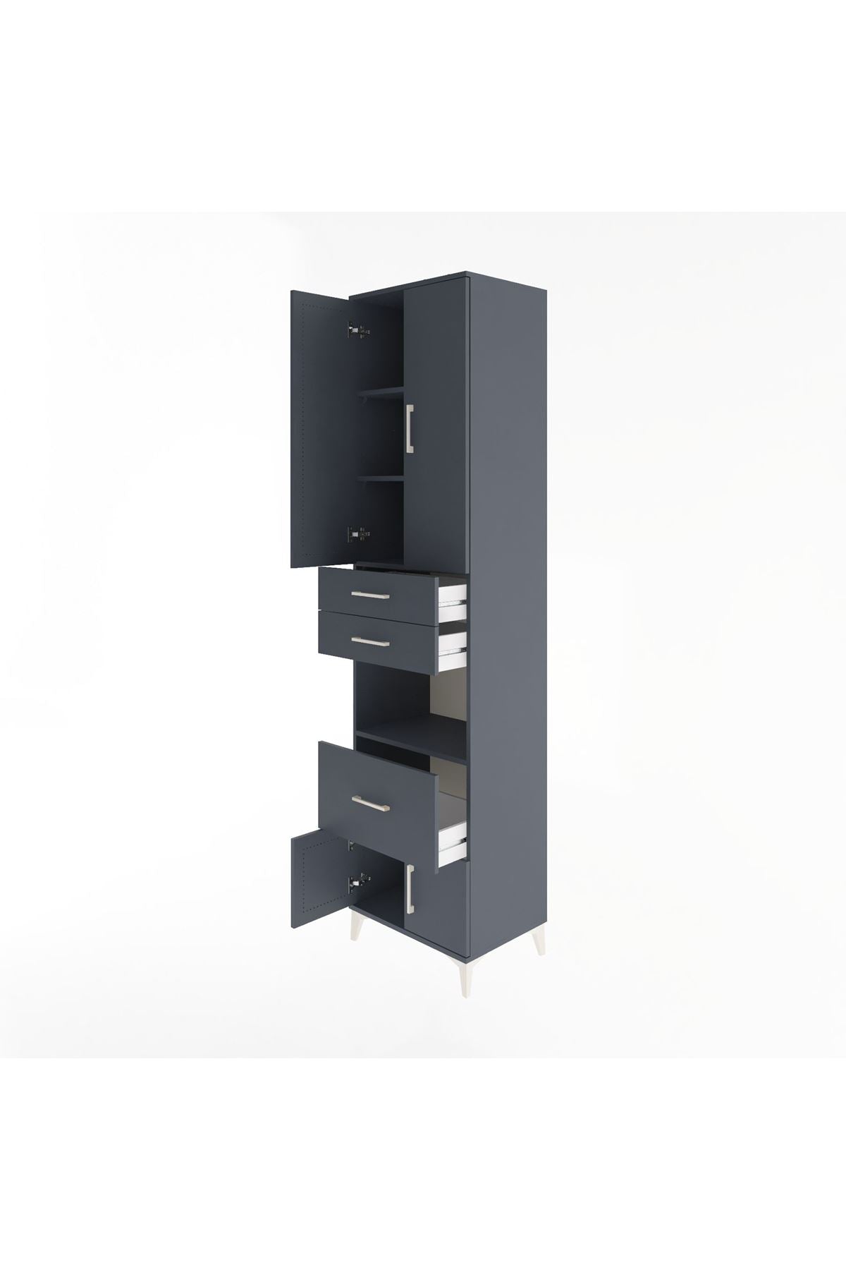 Hyperion Dolap 4 Raflı 3 Çekmeceli 4 Kapaklı 60x44x243 Antrasit-Antrasit