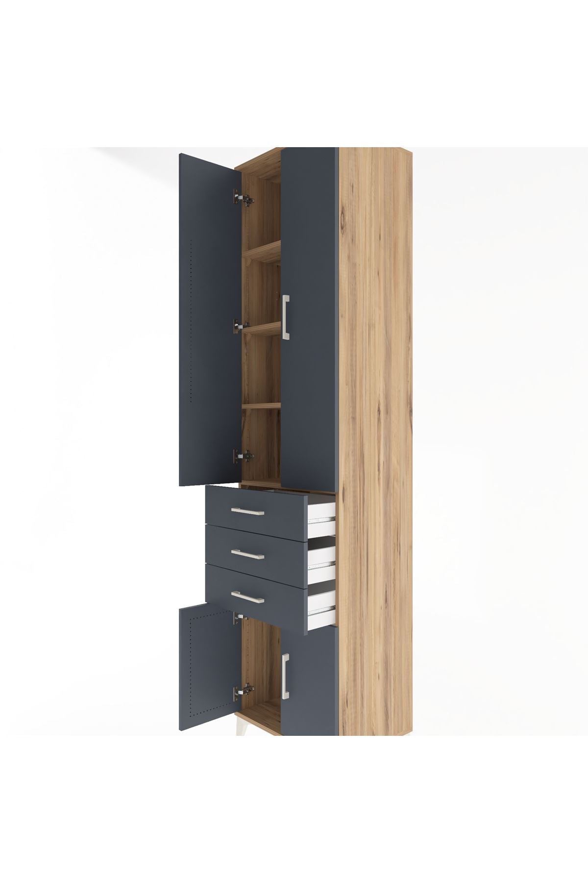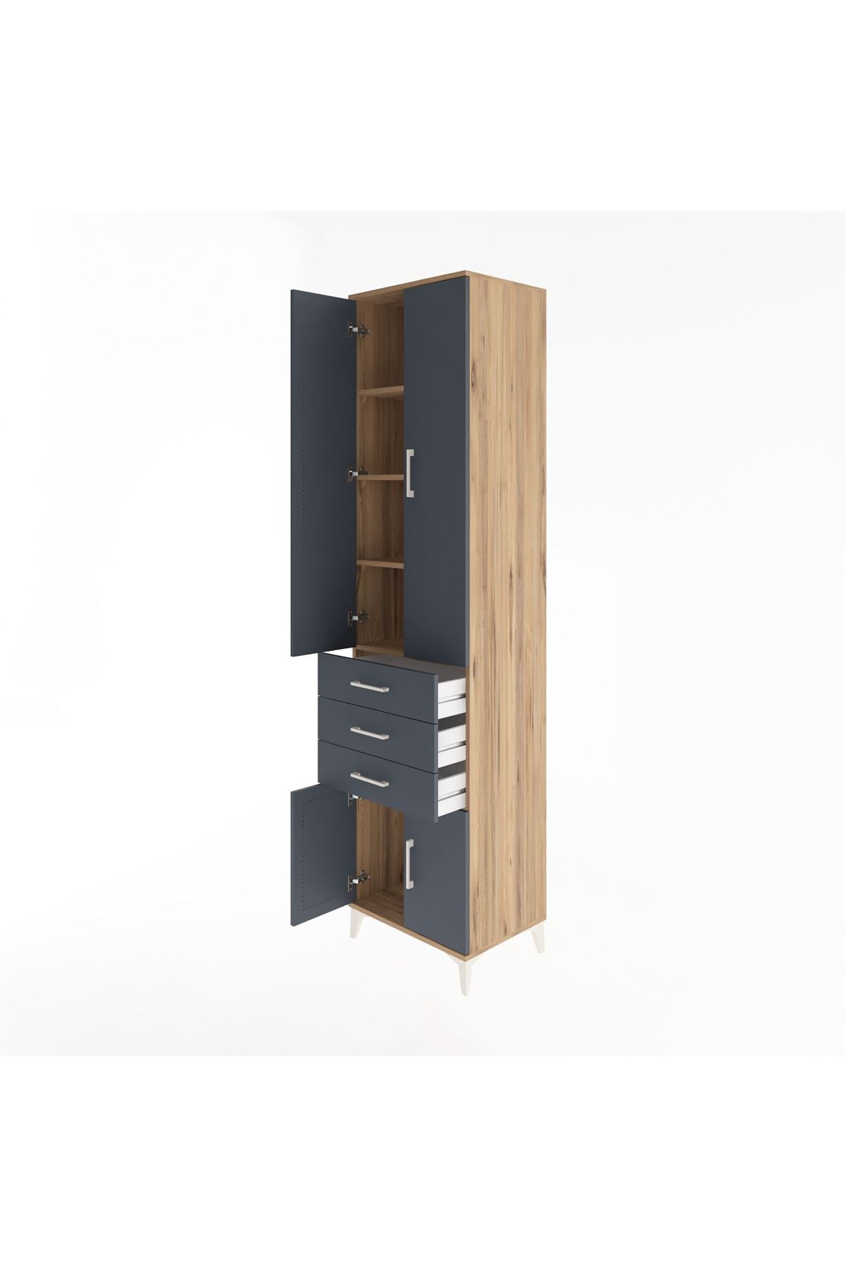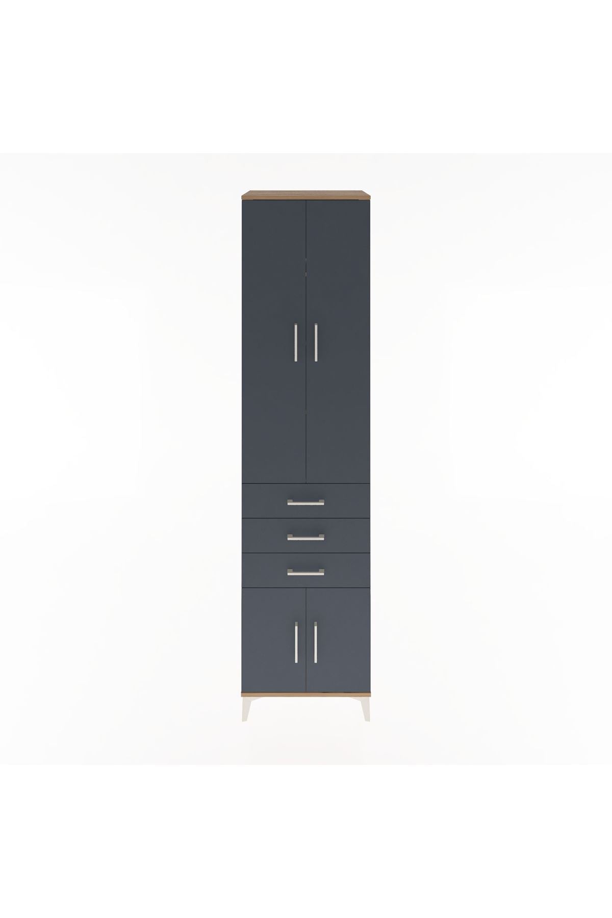 Hyperion Dolap 4 Raflı 3 Çekmeceli 4 Kapaklı 60x44x243 Çam-Antrasit
