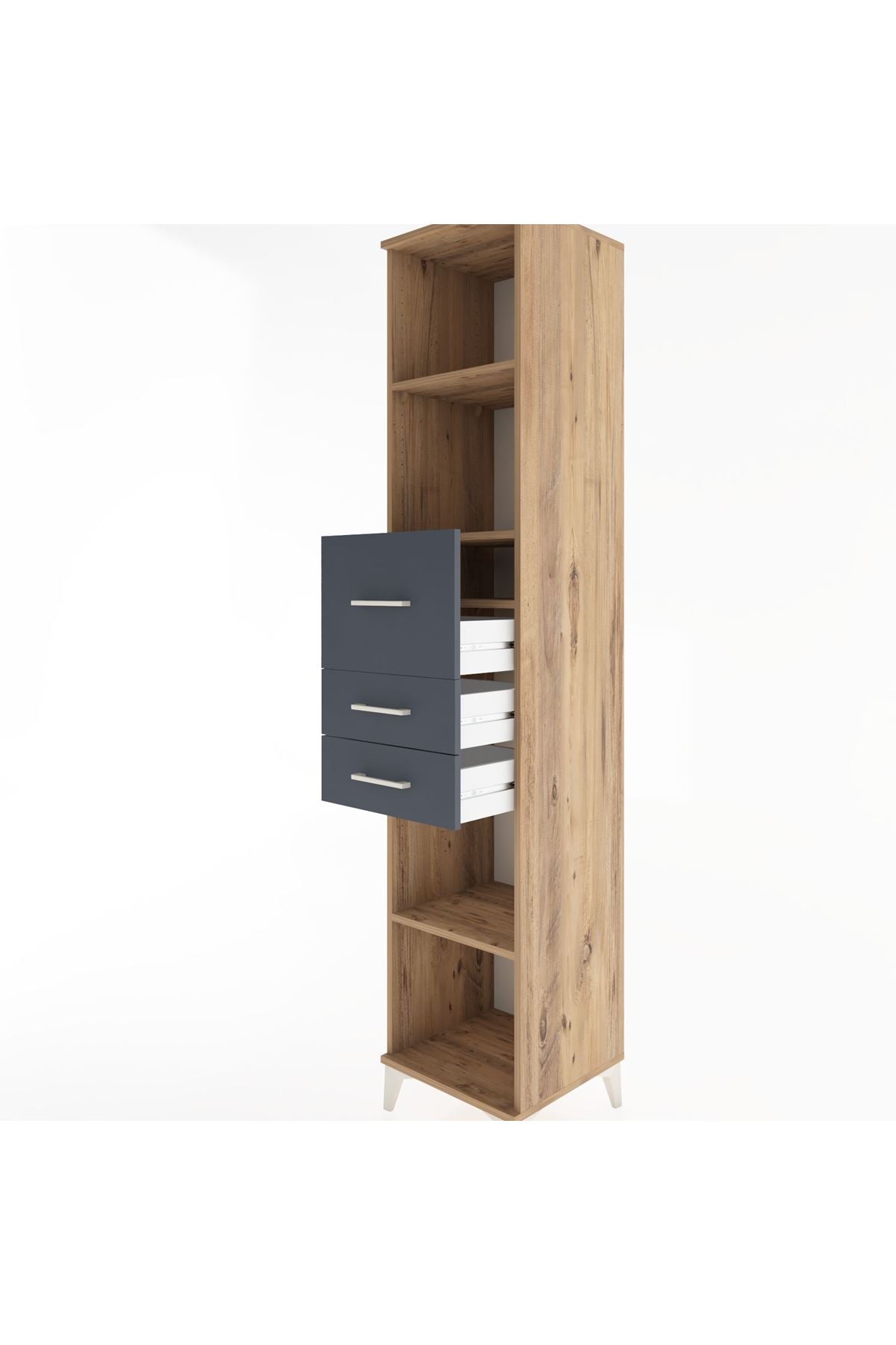 ✨ Yaşam alanlarınızı düzenlemenin ve şıklıkla buluşturmanın tam zamanı! Hyperion Dolap 4 Raflı 3 Çekmeceli (44x44x221), modern tasarımı ve fonksiyonel yapısıyla evinizin her köşesine değer katacak. İster yatak odanızda, ister çocuk odasında, isterse de ofisinizde kullanın, bu dolap depolama ihtiyaçlarınıza zarif bir çözüm sunar. Hyperion dolap, 4 raflı ve 3 çekmeceli yapısıyla eşyalarınızı düzenli bir şekilde saklamanızı sağlar.