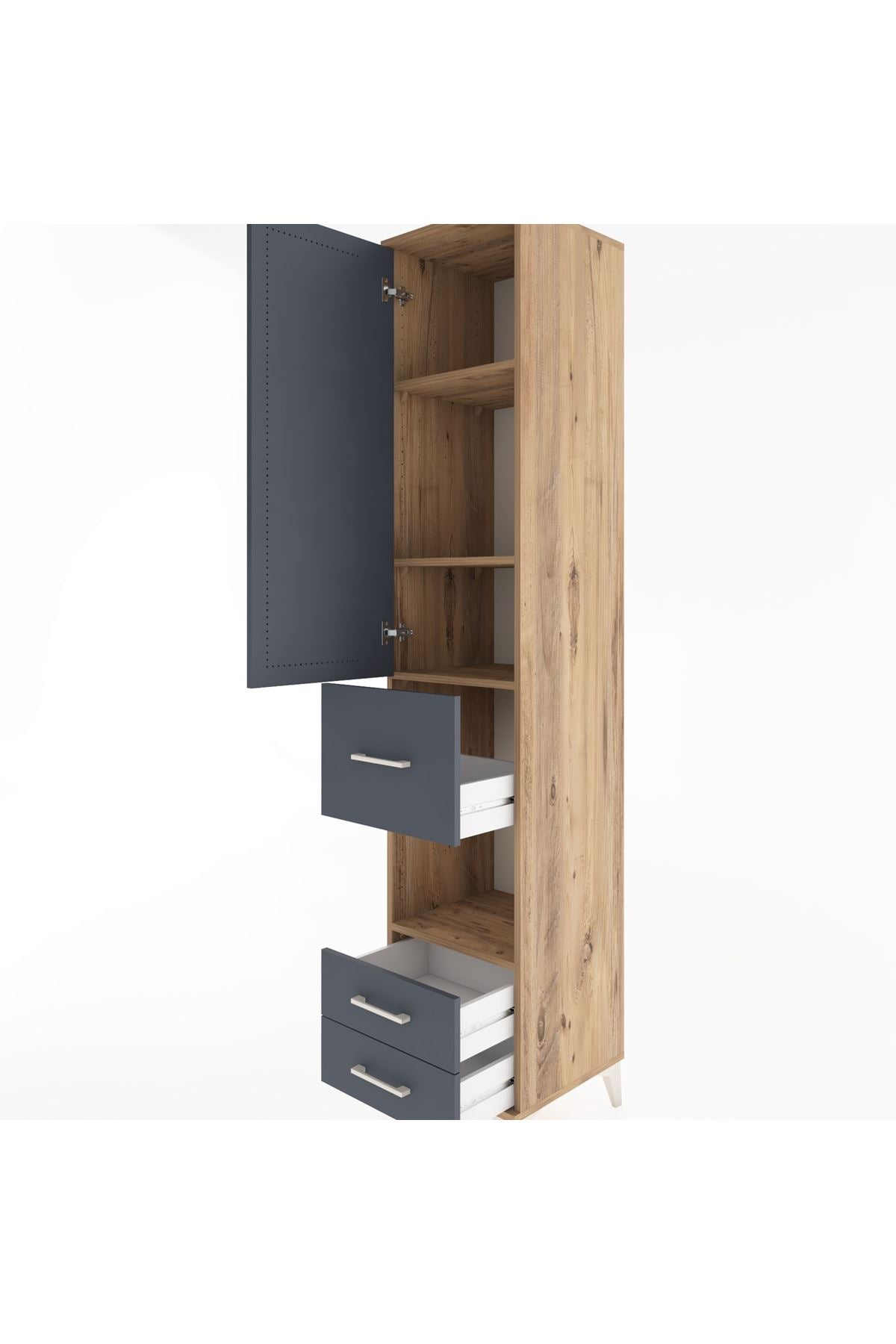 Hyperion Dolap 4 Raflı 3 Çekmeceli Tek Kapaklı 44x44x221 Çam-Antrasit