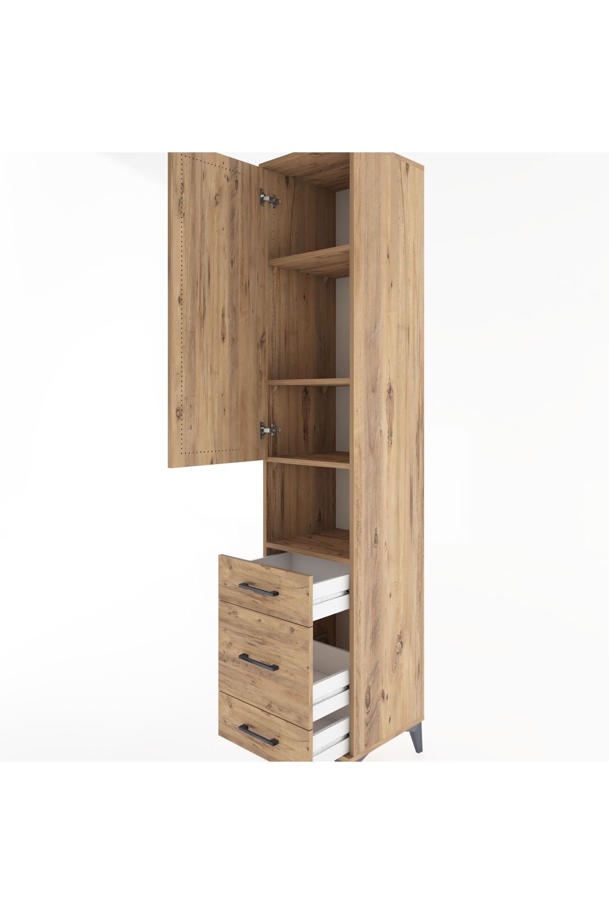 Hyperion Dolap 4 Raflı 3 Çekmeceli Tek Kapaklı 44x44x221 Çam-Çam
