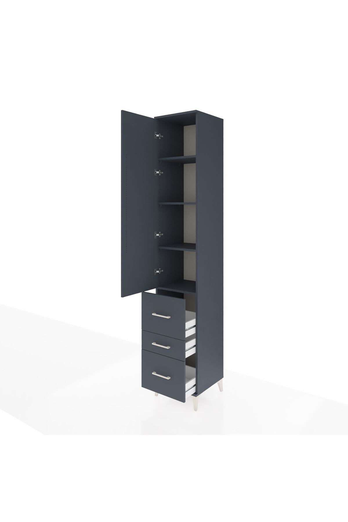 Hyperion Dolap 4 Raflı 3 Çekmeceli Tek Kapaklı 44x44x243 Antrasit-Antrasit