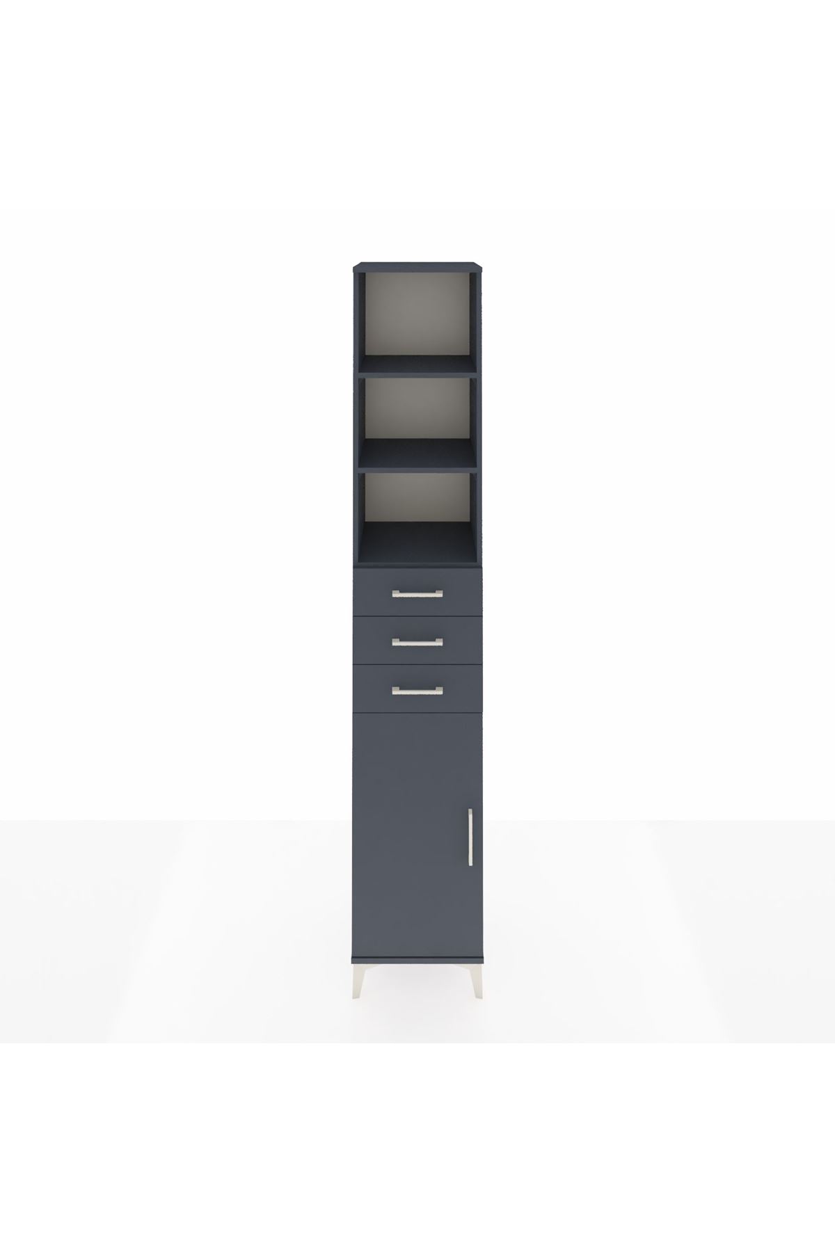 Hyperion Dolap 4 Raflı 3 Çekmeceli Tek Kapaklı 44x44x243 Antrasit-Antrasit