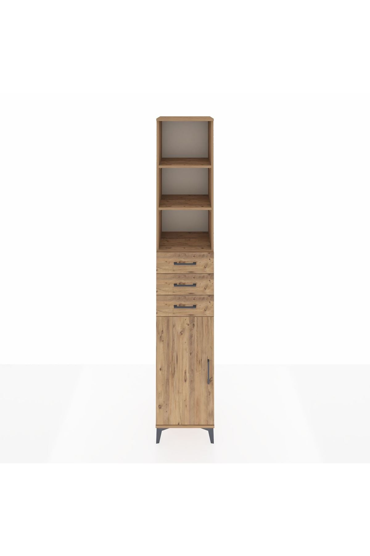 Hyperion Dolap 4 Raflı 3 Çekmeceli Tek Kapaklı 44x44x243 Çam-Çam