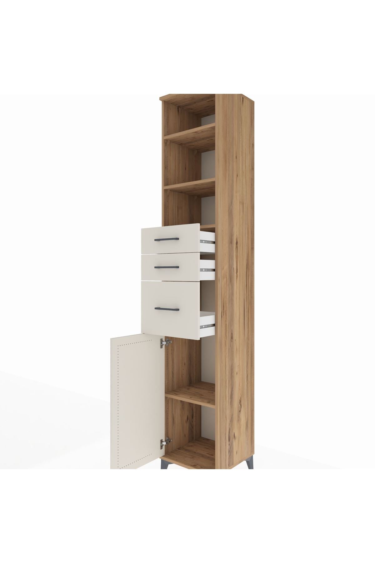 Hyperion Dolap 4 Raflı 3 Çekmeceli Tek Kapaklı 44x44x243 Çam-Aytaşı