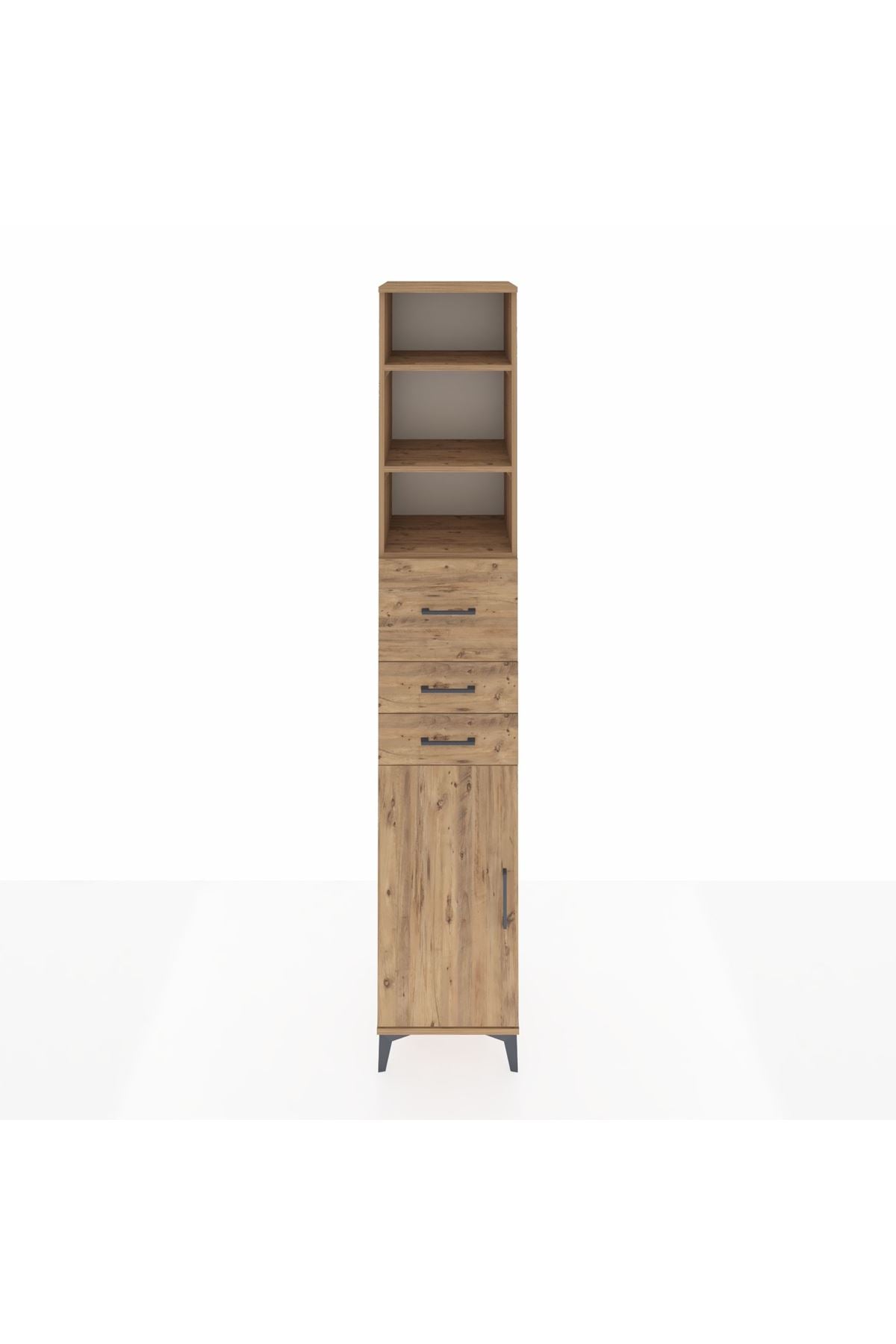 Hyperion Dolap 4 Raflı 3 Çekmeceli Tek Kapaklı 44x44x243 Çam-Çam