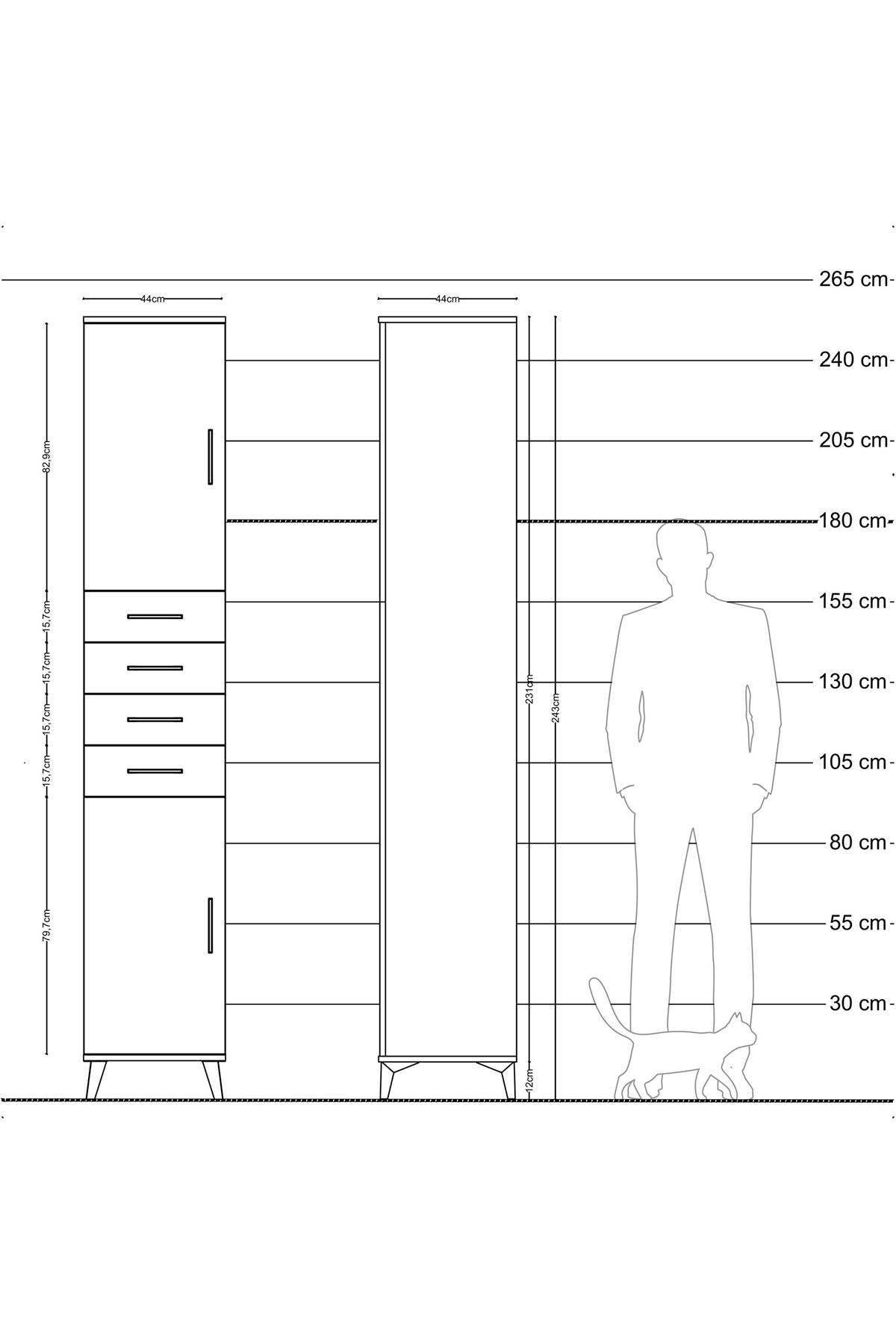 Hyperion Dolap 4 Raflı 4 Çekmeceli 2 Kapaklı 44x44x243 Antrasit-Antrasit