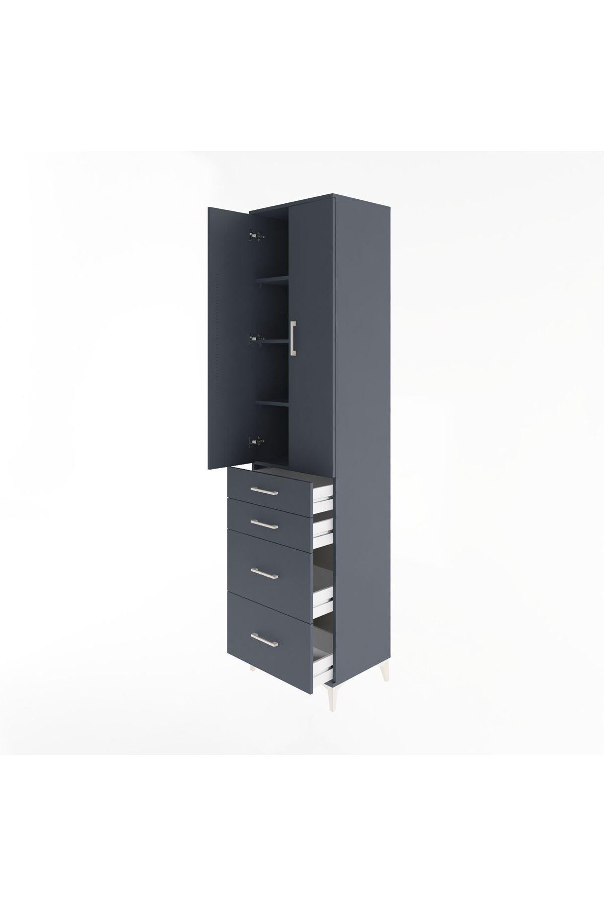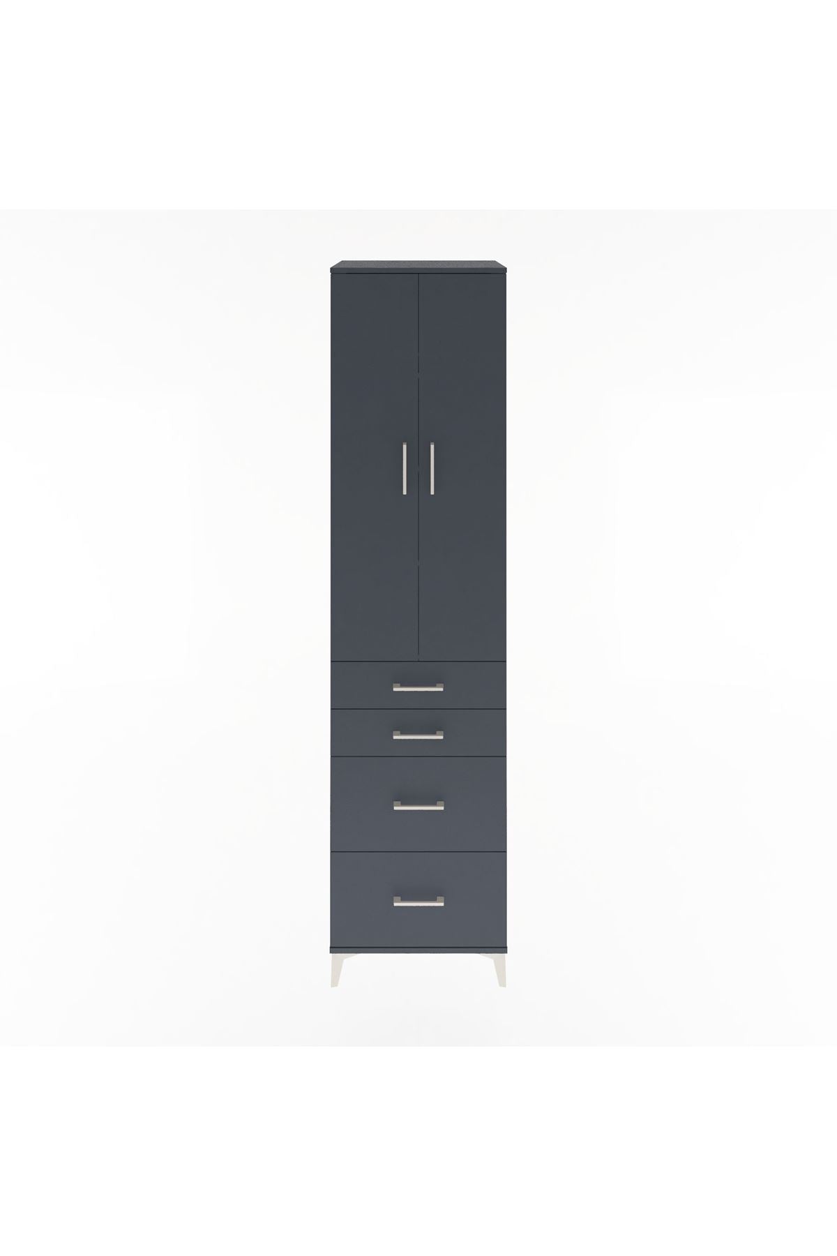 Hyperion Dolap 4 Raflı 4 Çekmeceli 2 Kapaklı 60x44x243 Antrasit-Antrasit