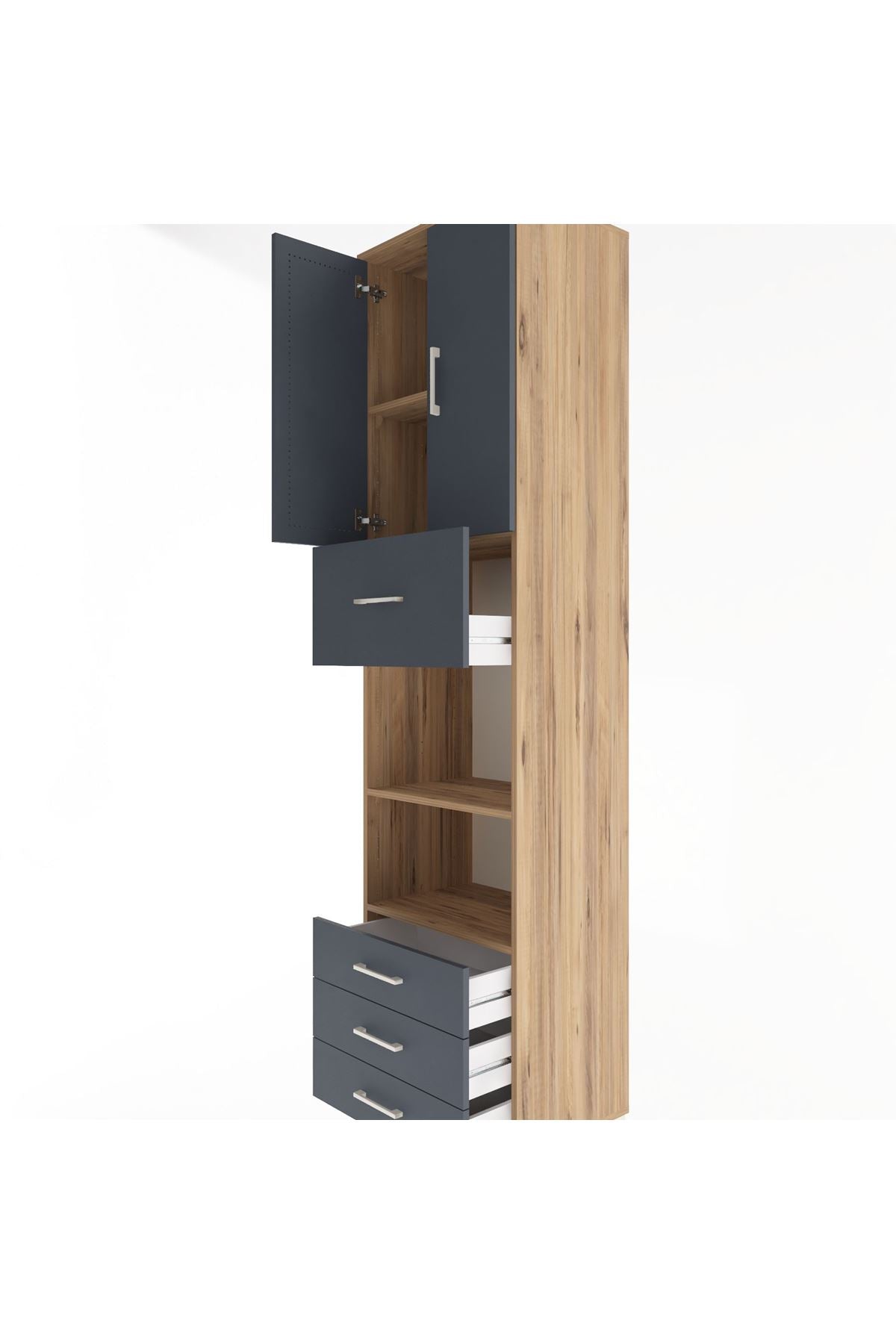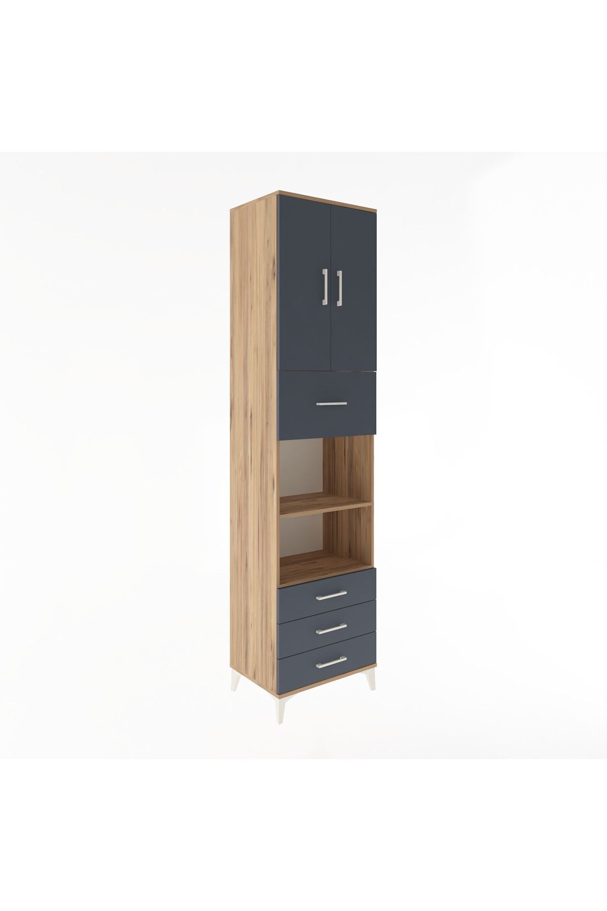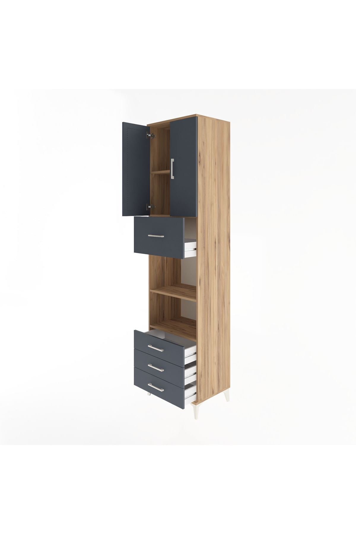 Hyperion Dolap 4 Raflı 4 Çekmeceli 2 Kapaklı 60x44x243 Çam-Antrasit
