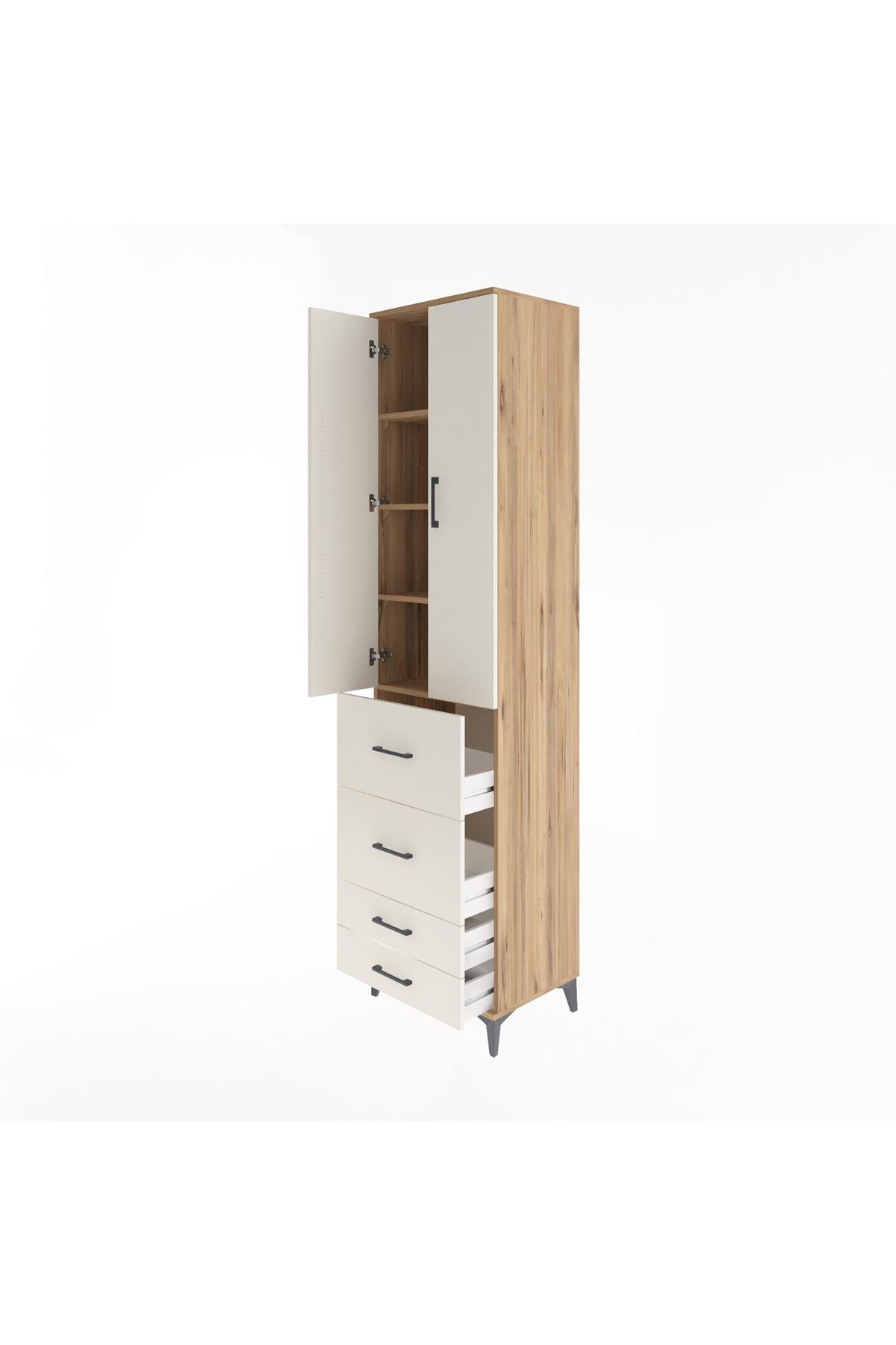 Hyperion Dolap 4 Raflı 4 Çekmeceli 2 Kapaklı 60x44x243 Çam-Aytaşı