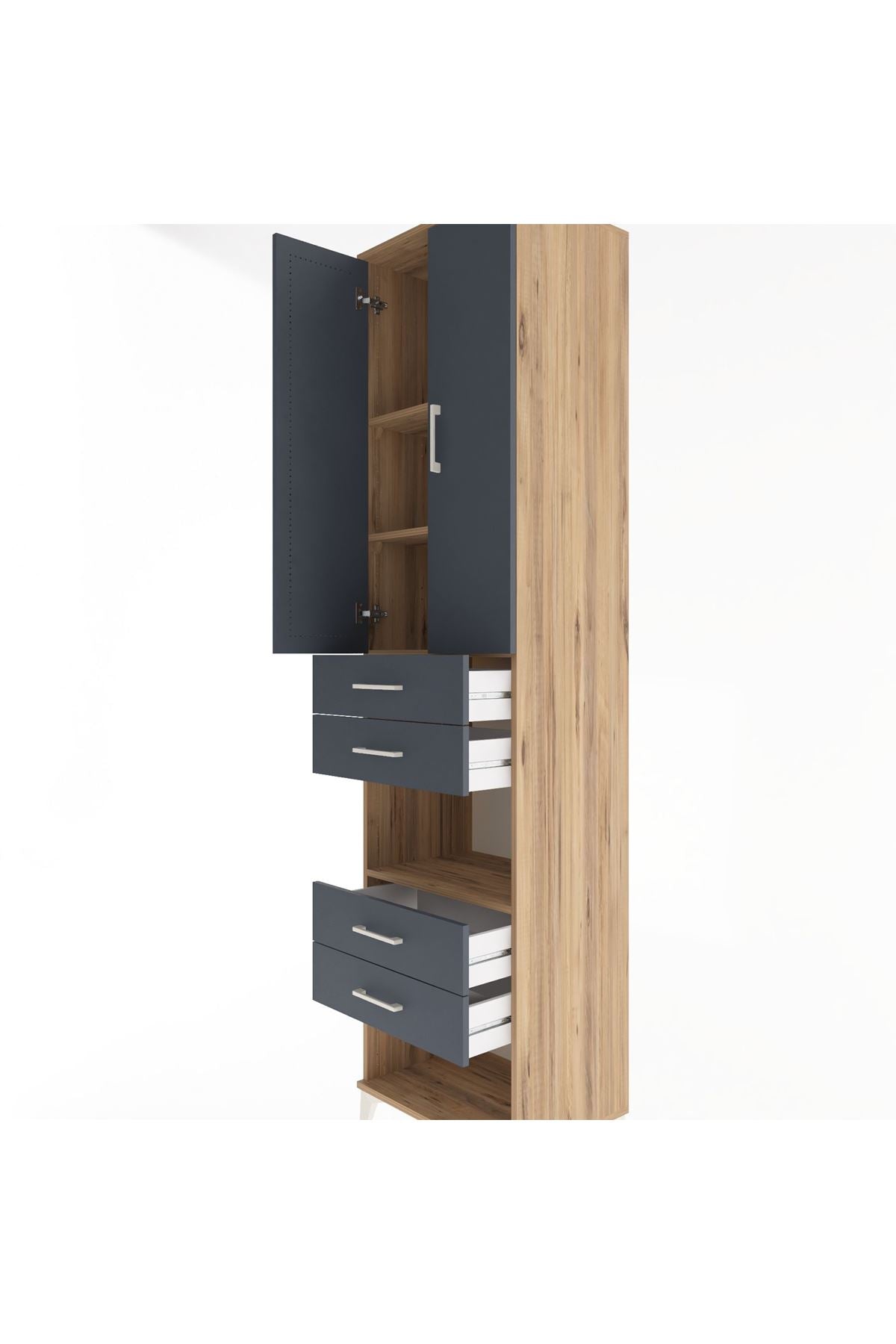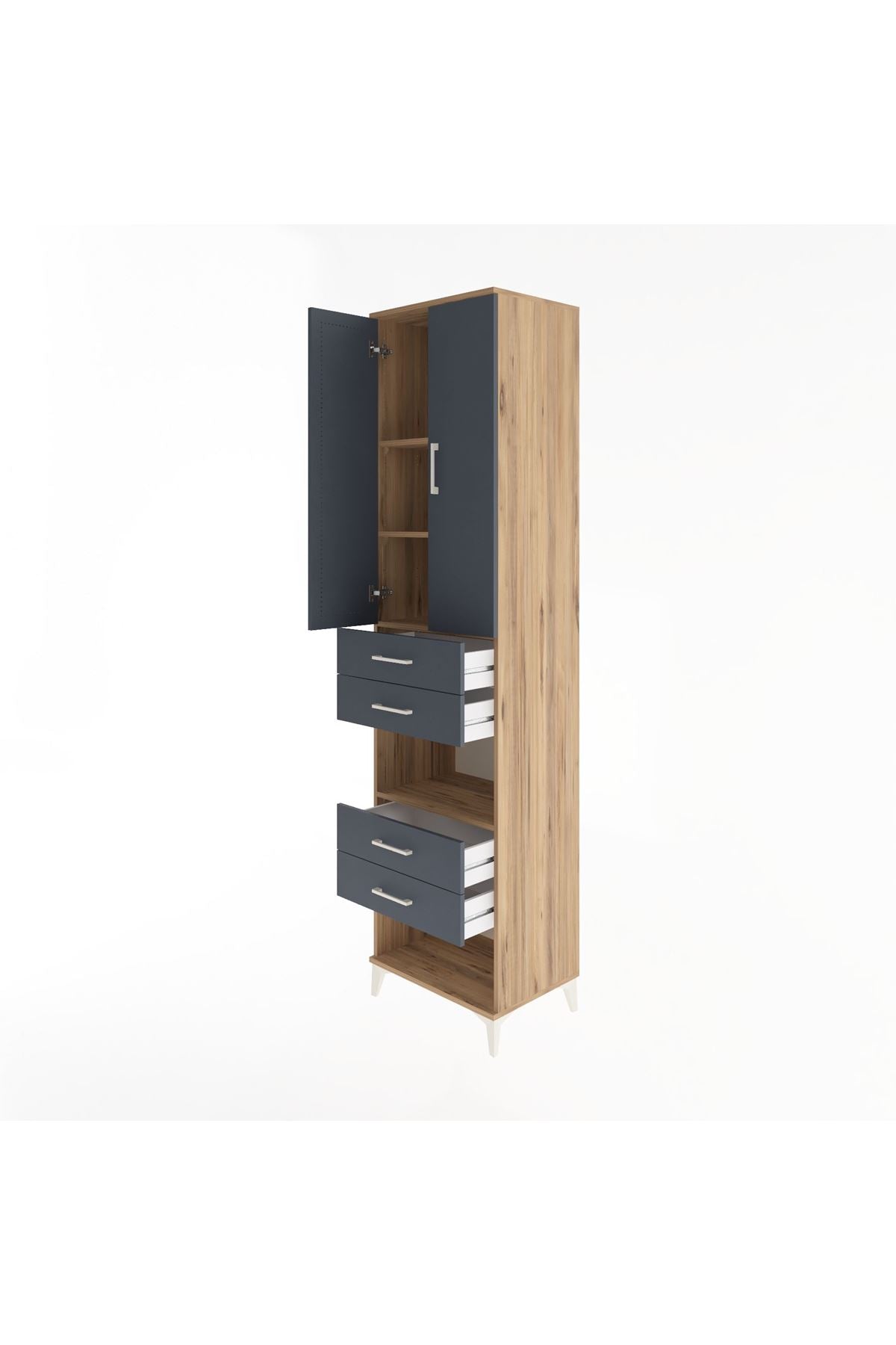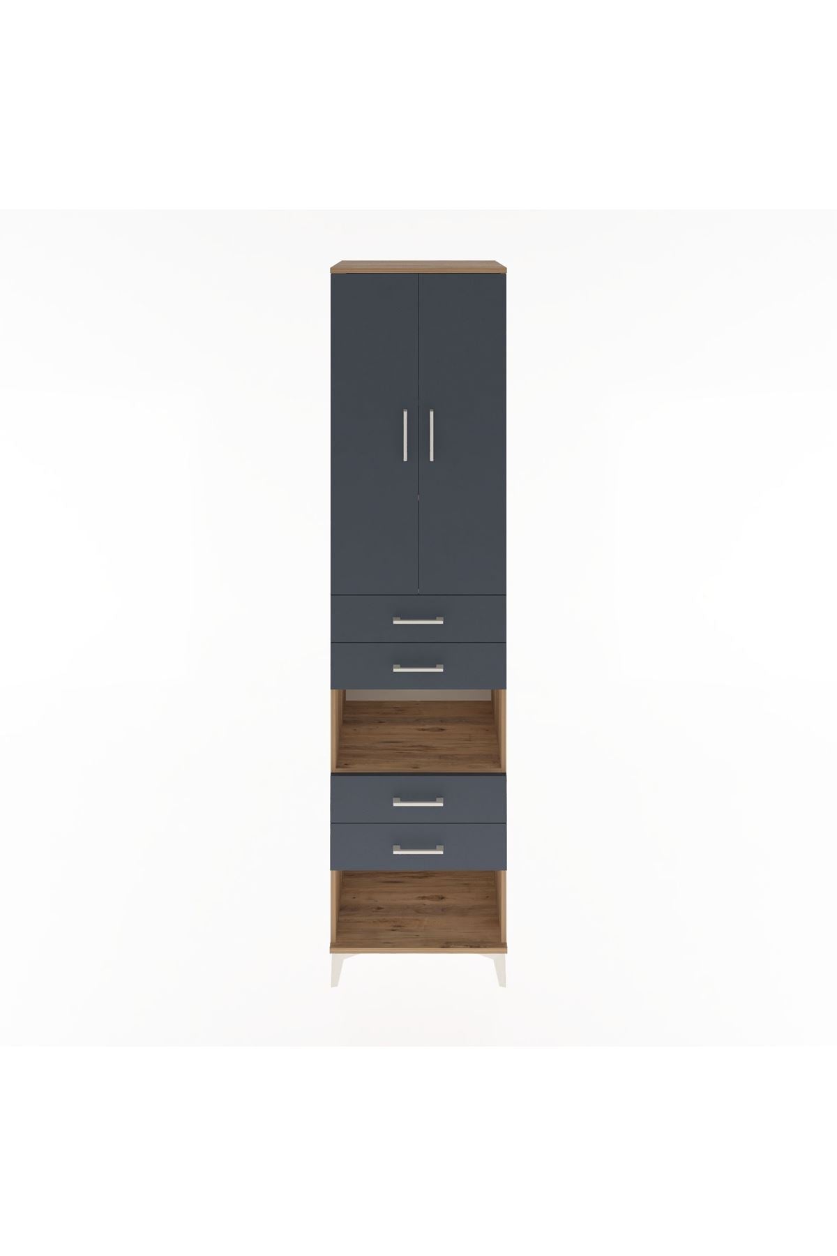 Hyperion Dolap 4 Raflı 4 Çekmeceli 2 Kapaklı 60x44x243 Çam-Antrasit