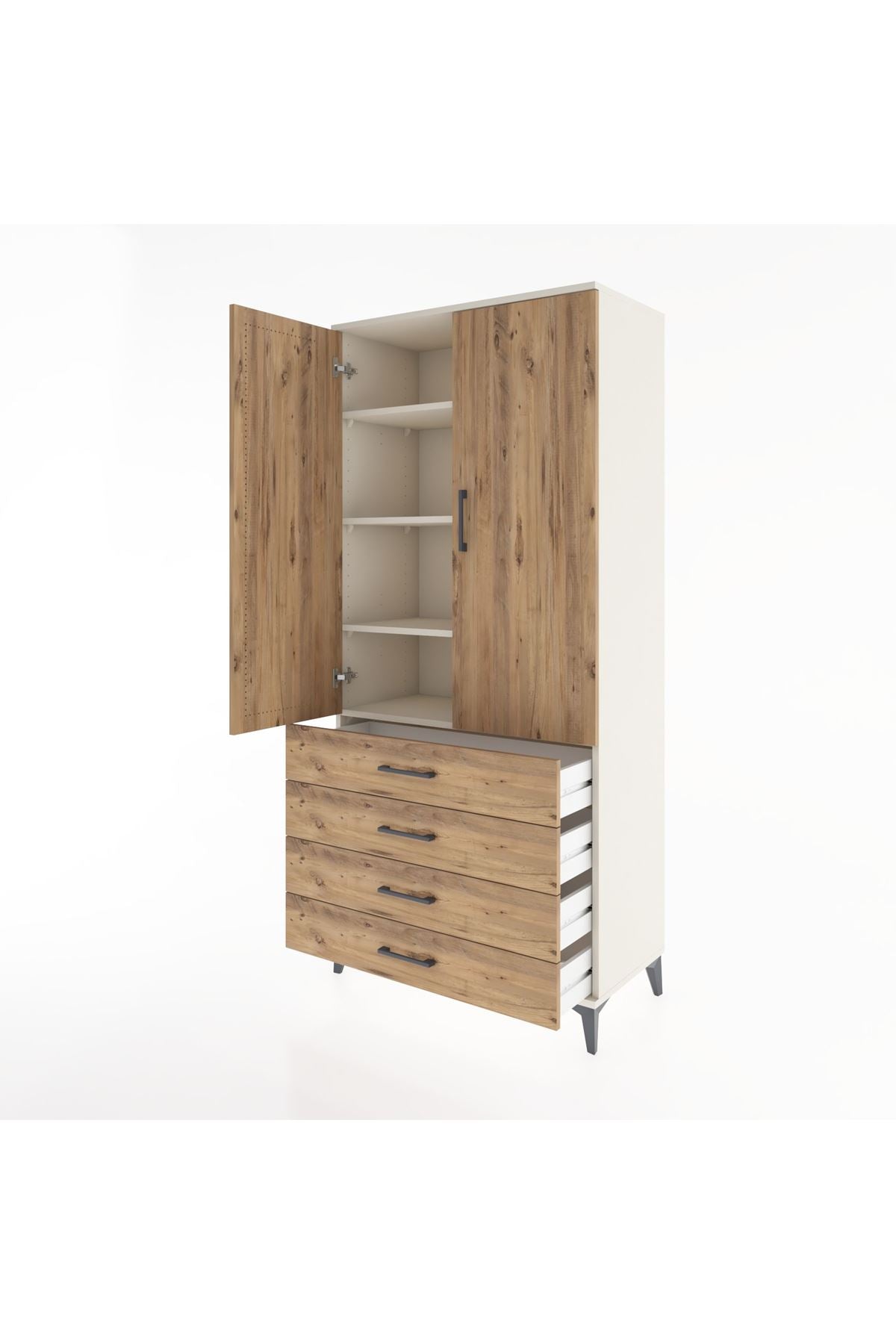Hyperion Dolap 4 Raflı 4 Çekmeceli 2 Kapaklı 88x44x195 Aytaşı-Çam