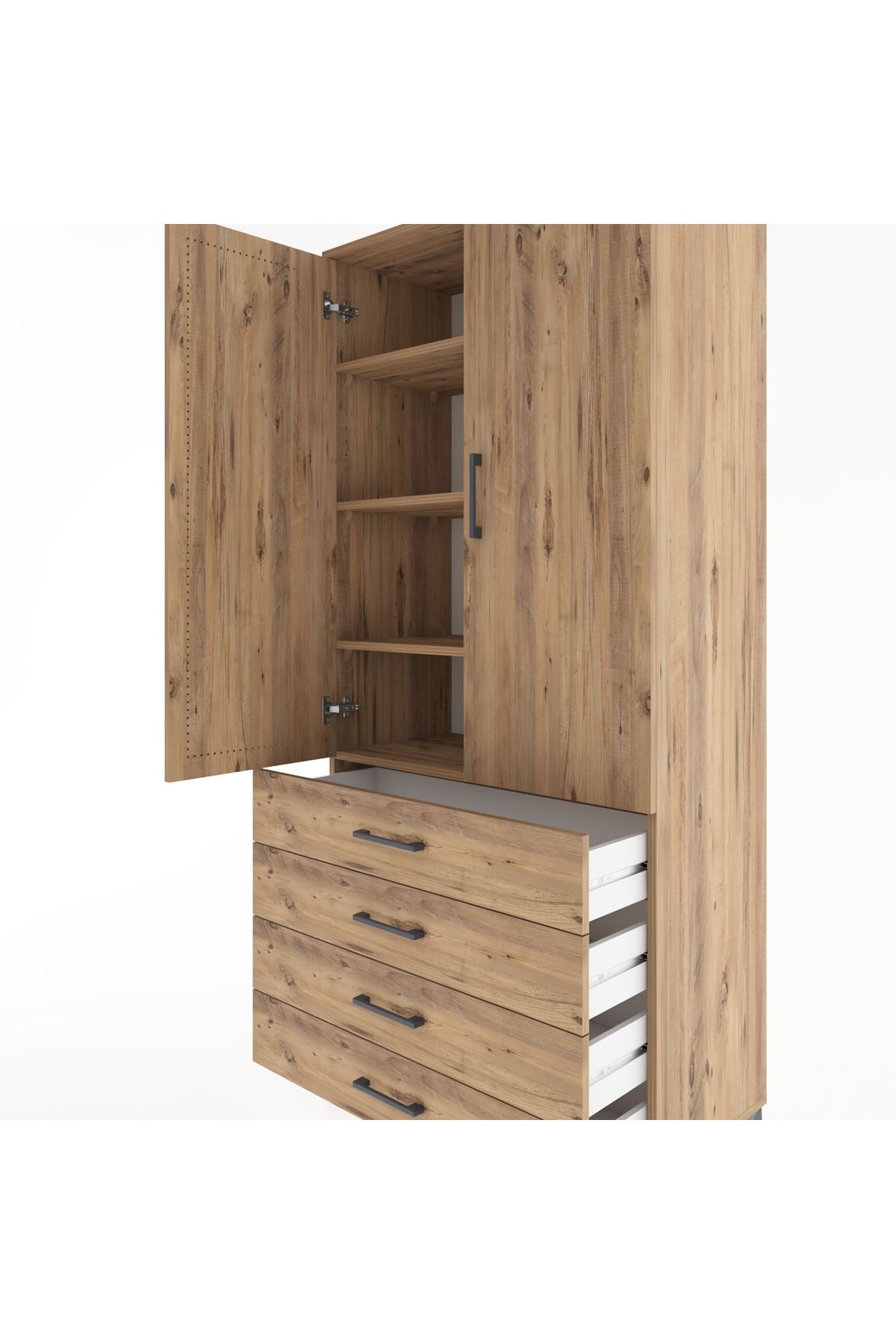 Hyperion Dolap 4 Raflı 4 Çekmeceli 2 Kapaklı 88x44x195 Çam-Çam
