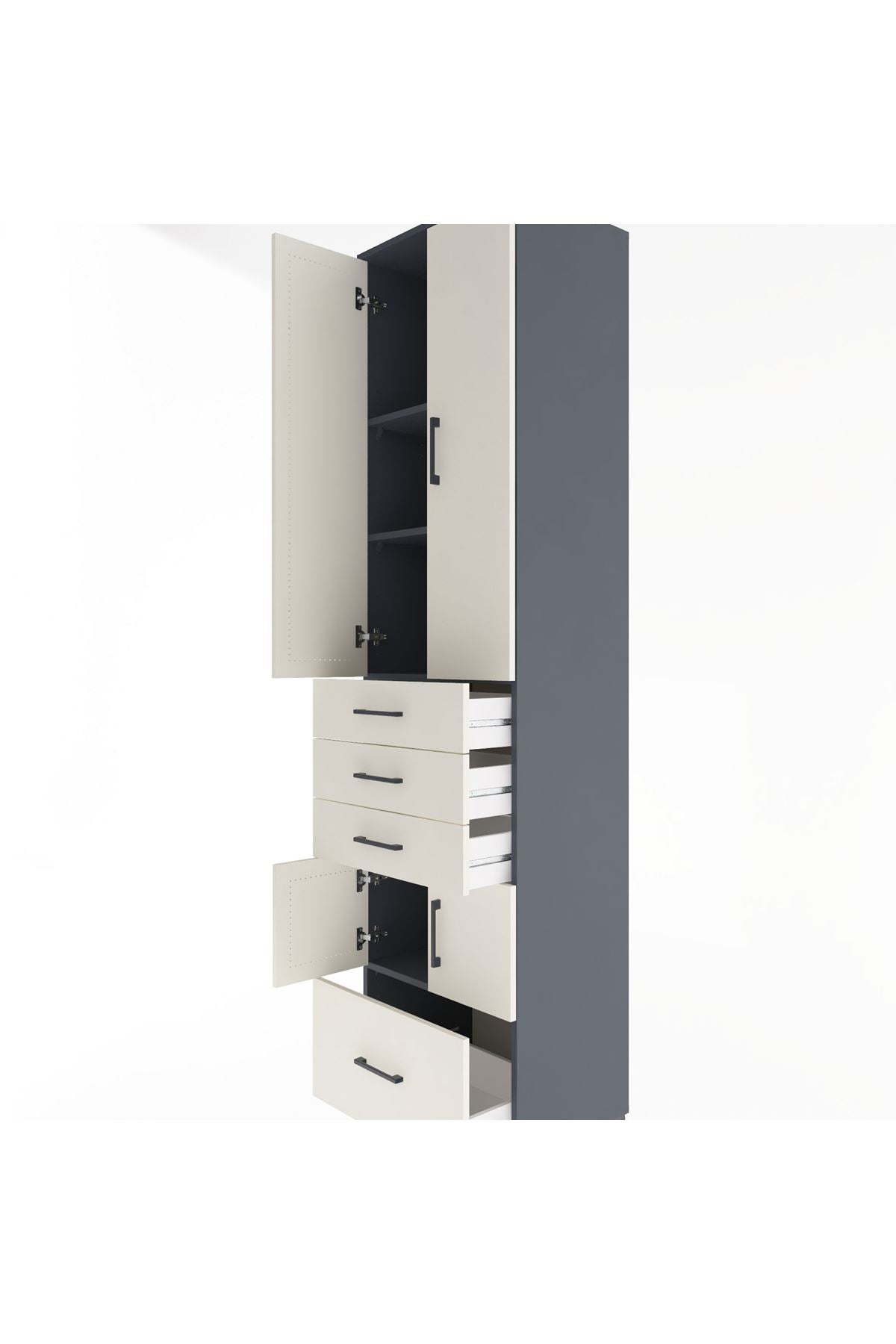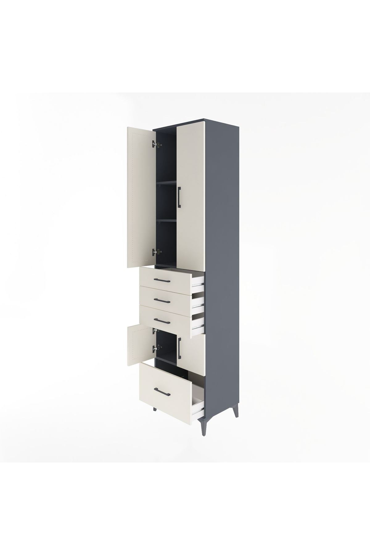 Hyperion Dolap 4 Raflı 4 Çekmeceli 4 Kapaklı 60x44x243 Antrasit-Aytaşı