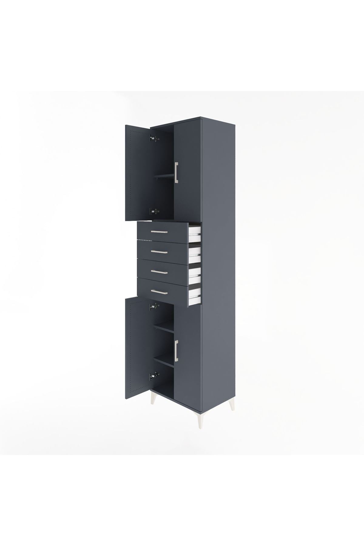 Hyperion Dolap 4 Raflı 4 Çekmeceli 4 Kapaklı 60x44x243 Antrasit-Antrasit