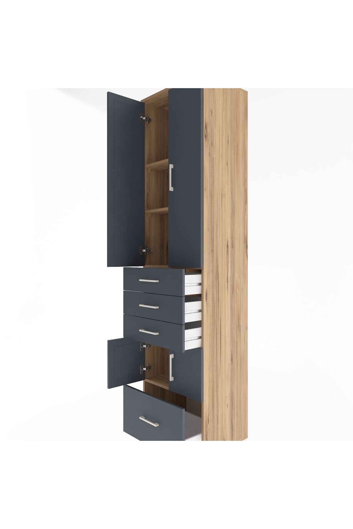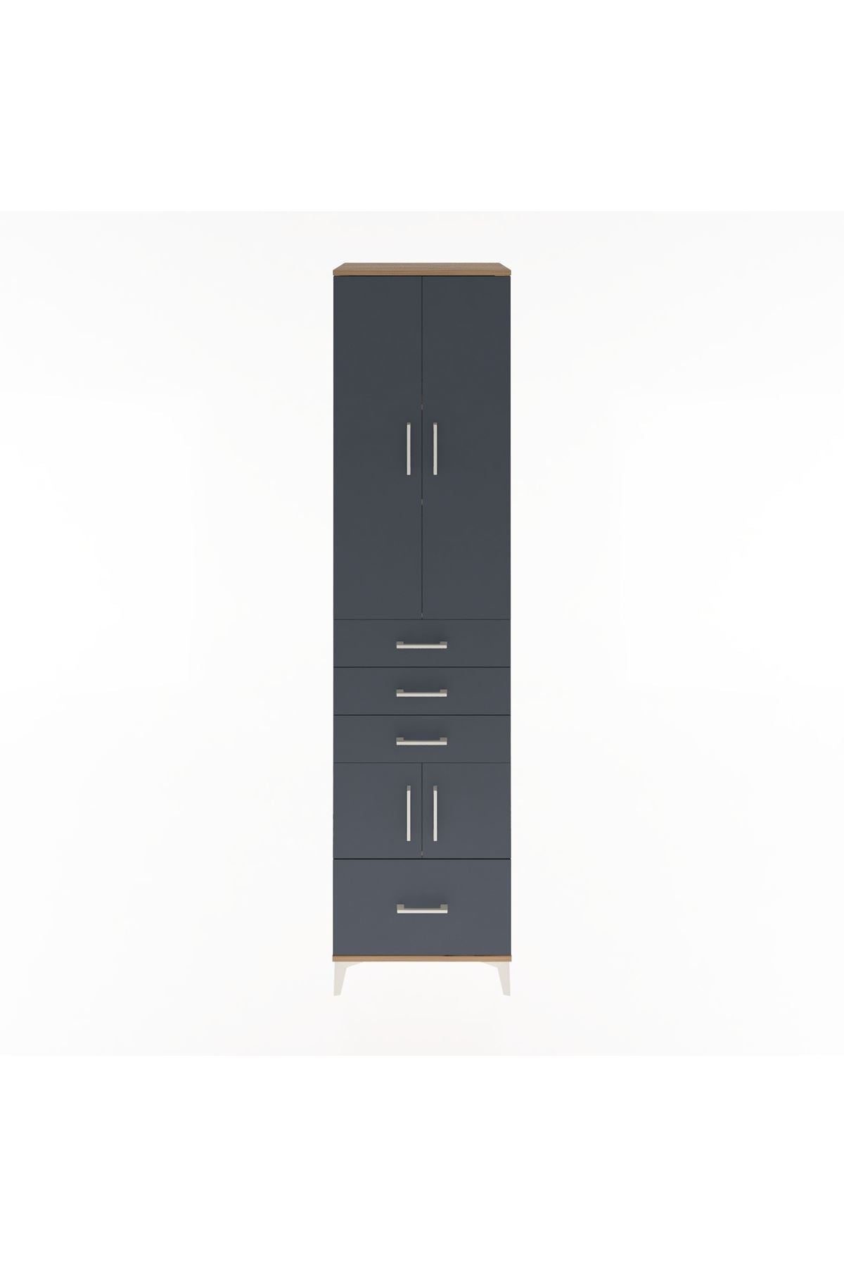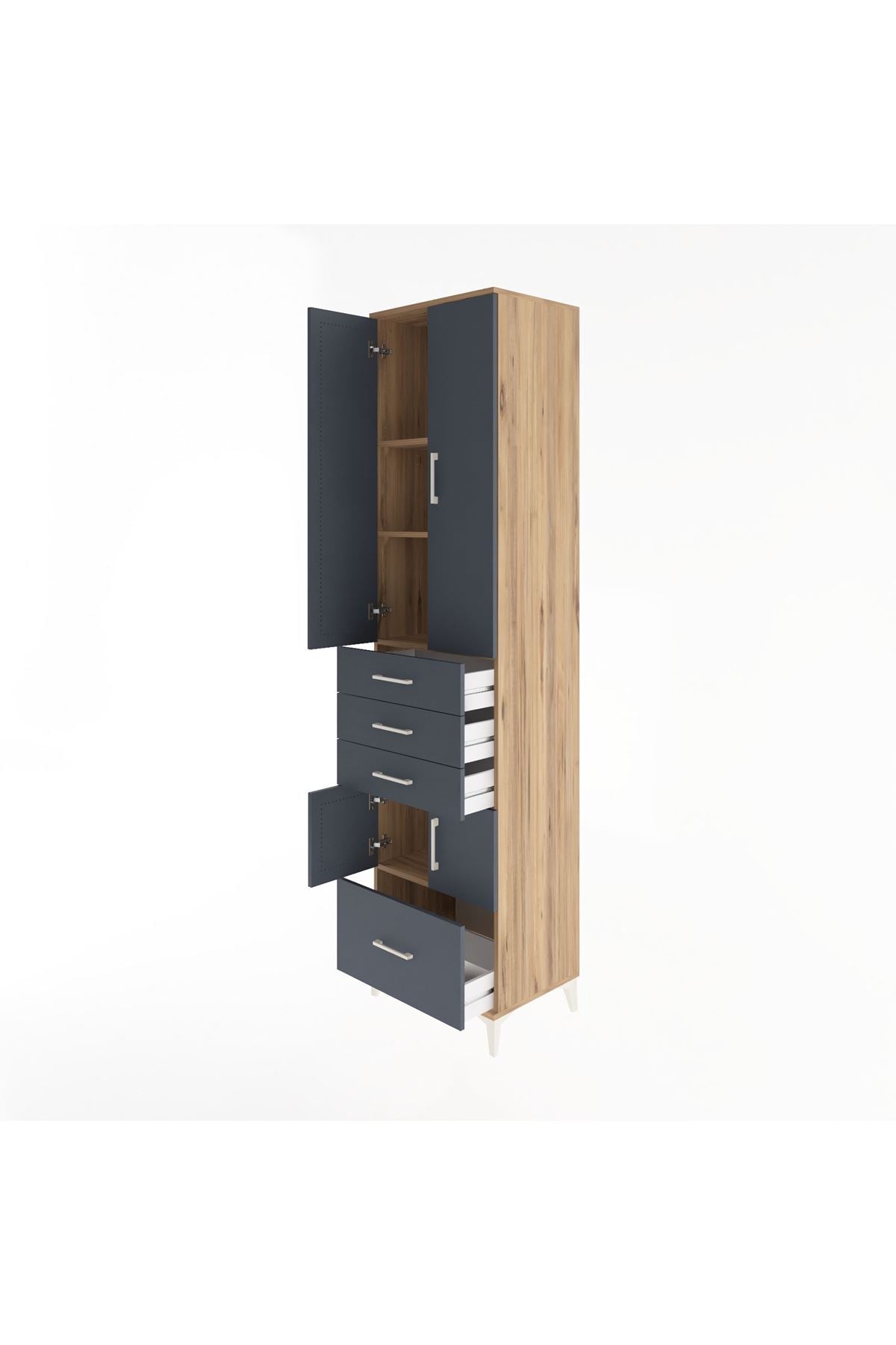 Hyperion Dolap 4 Raflı 4 Çekmeceli 4 Kapaklı 60x44x243 Çam-Antrasit