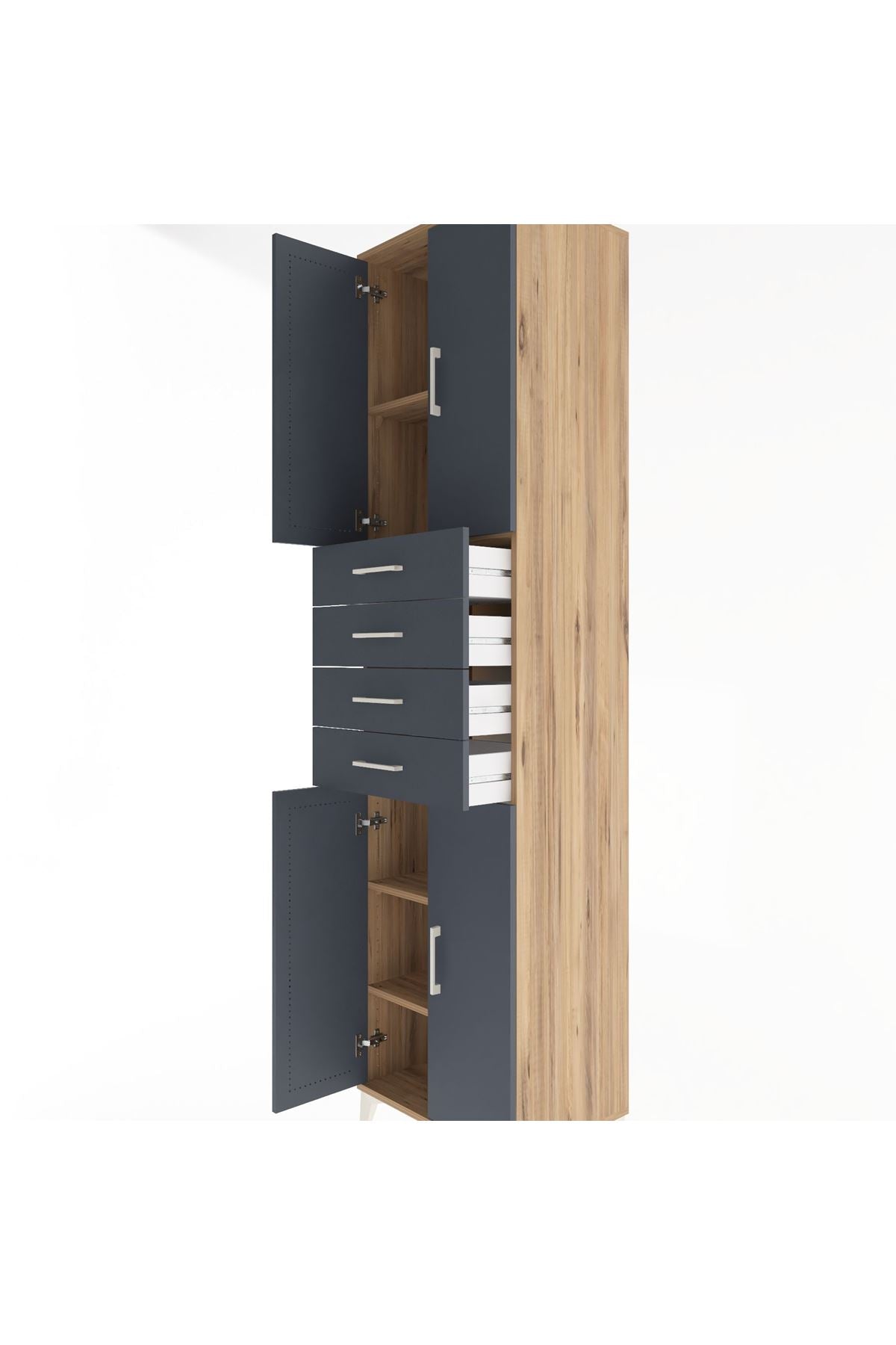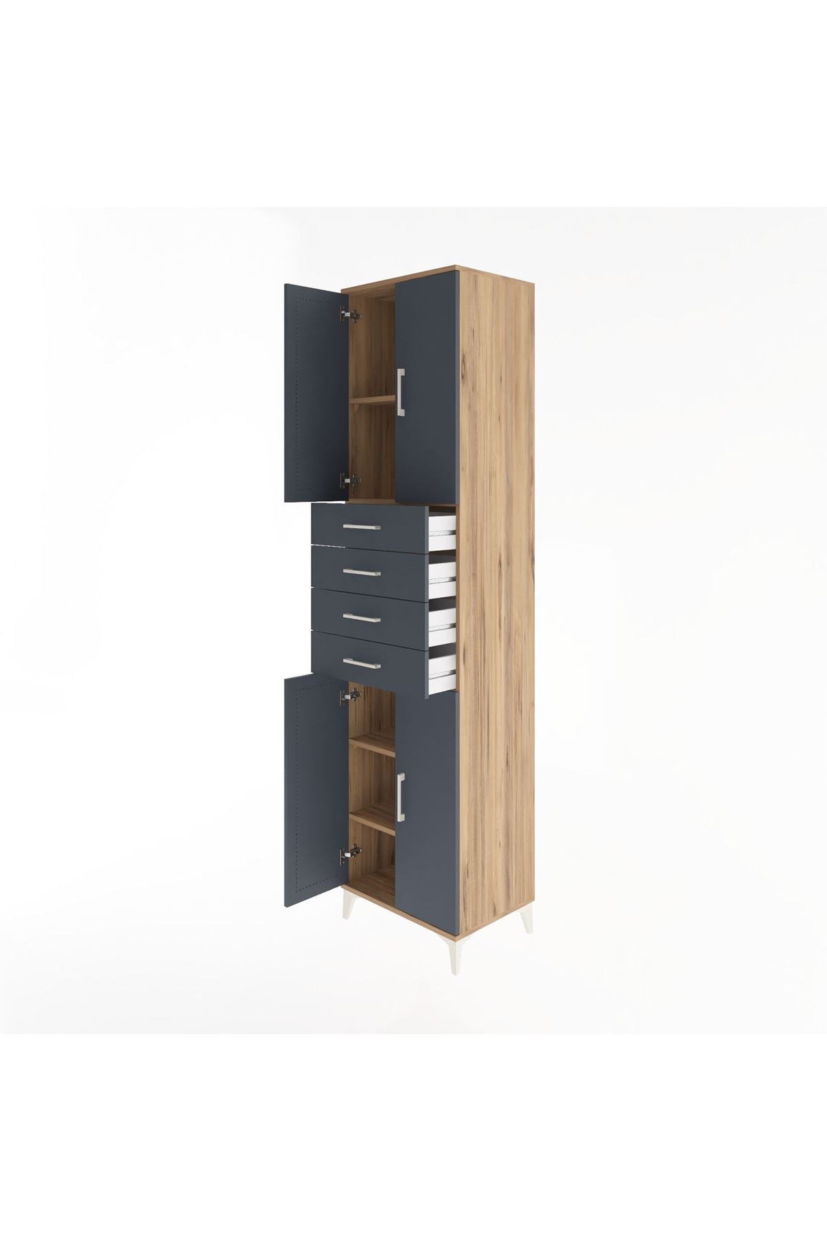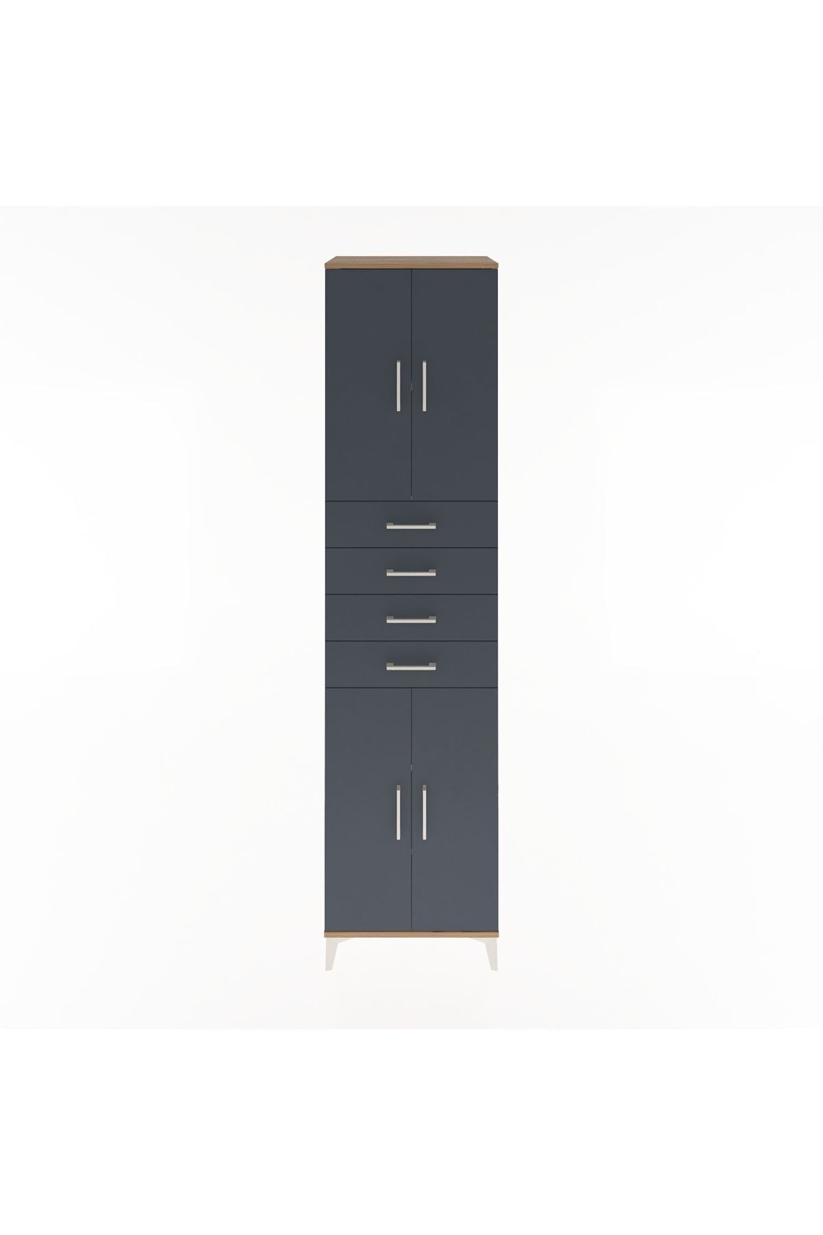 Hyperion Dolap 4 Raflı 4 Çekmeceli 4 Kapaklı 60x44x243 Çam-Antrasit