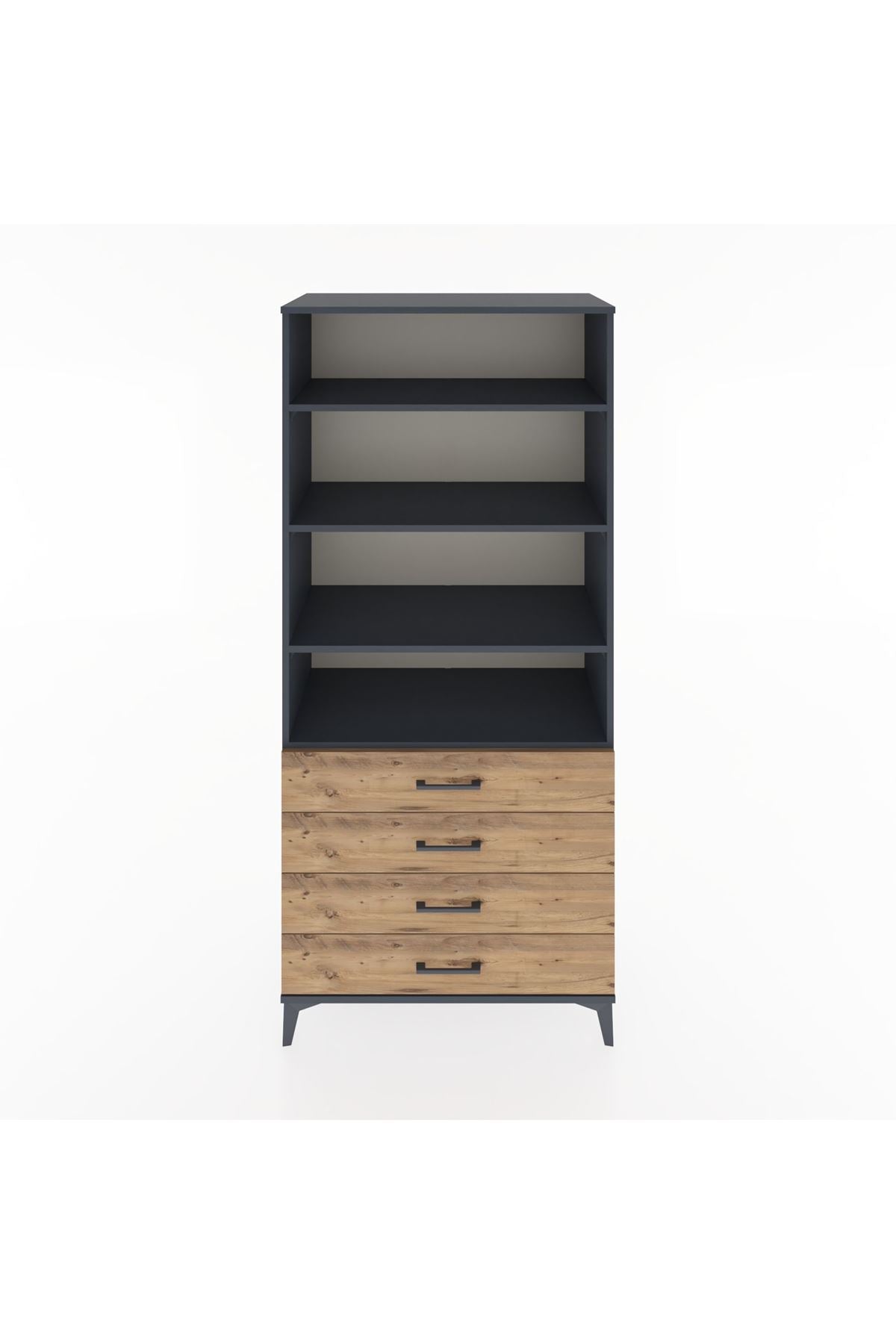 Hyperion Dolap 4 Raflı 4 Çekmeceli 88x44x195 Antrasit-Çam