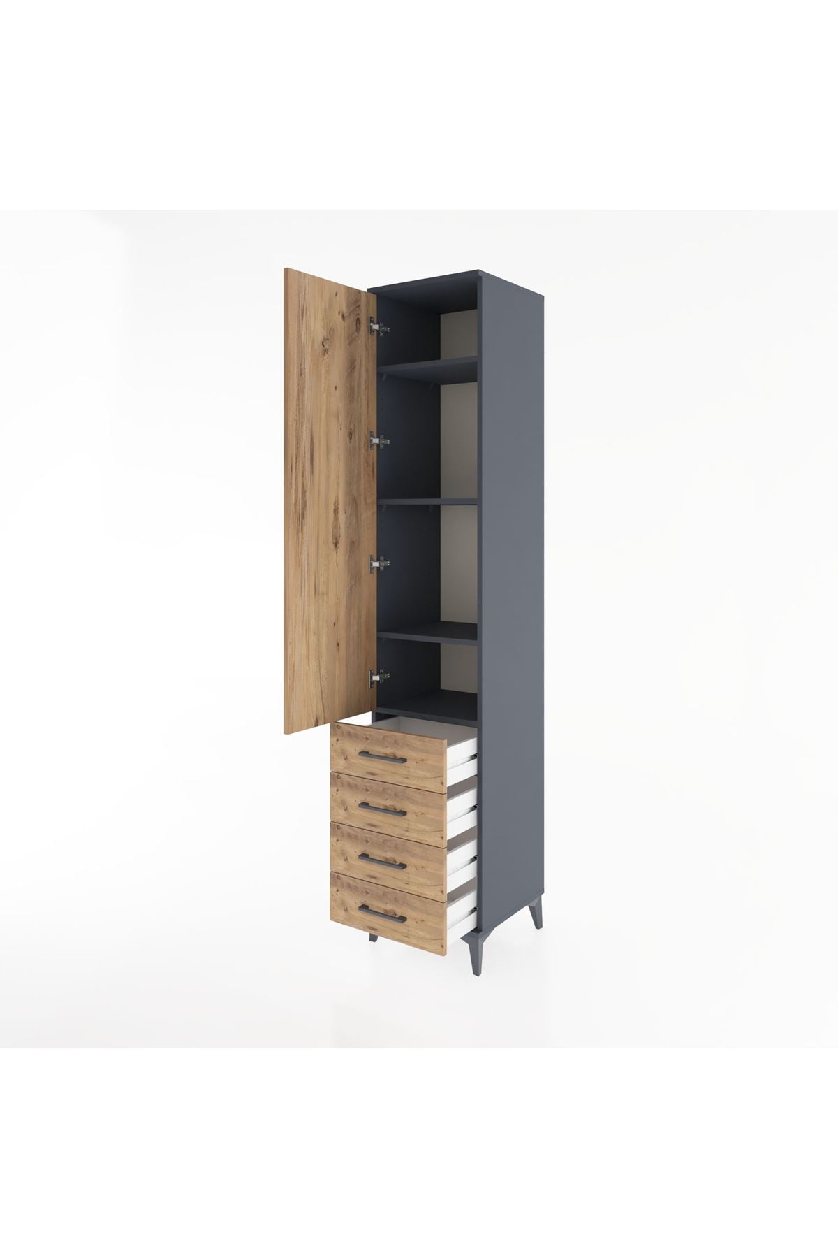 Hyperion Dolap 4 Raflı 4 Çekmeceli Tek Kapaklı 44x44x221 Antrasit-Çam