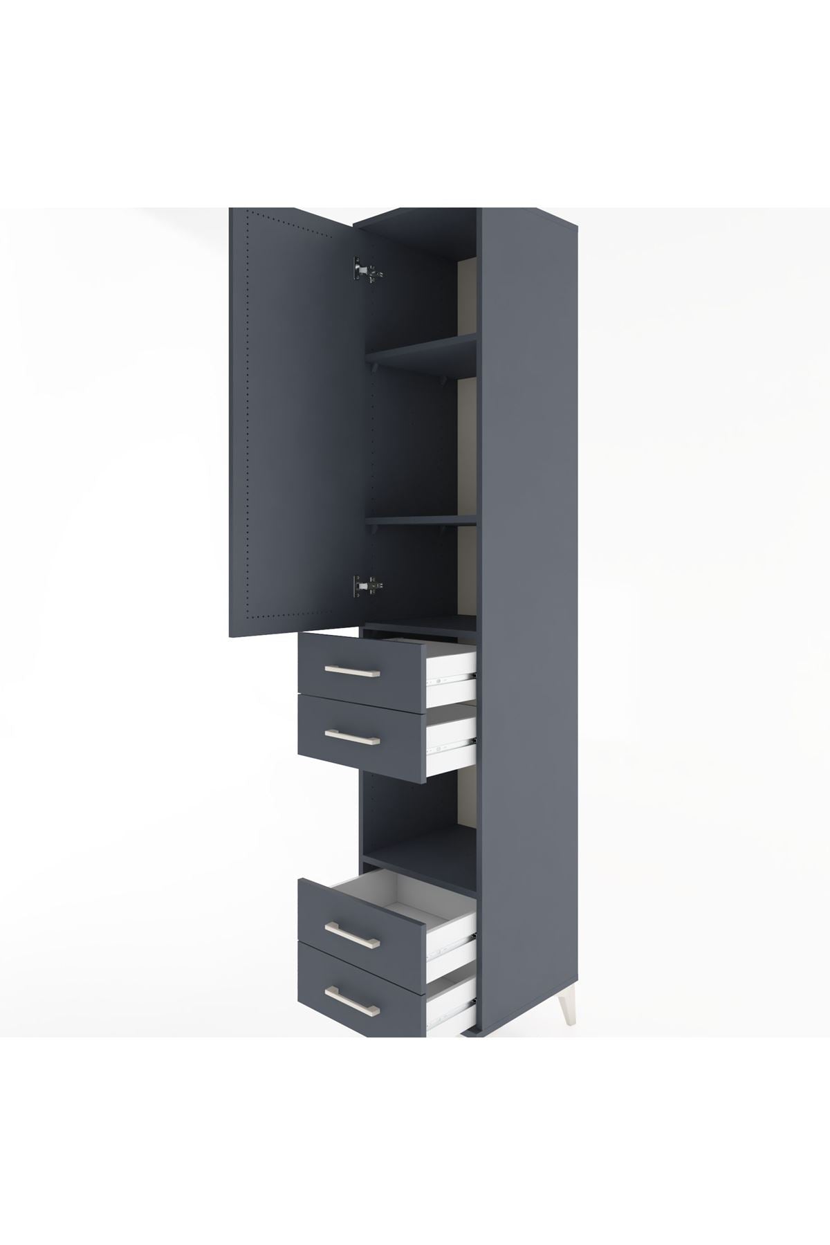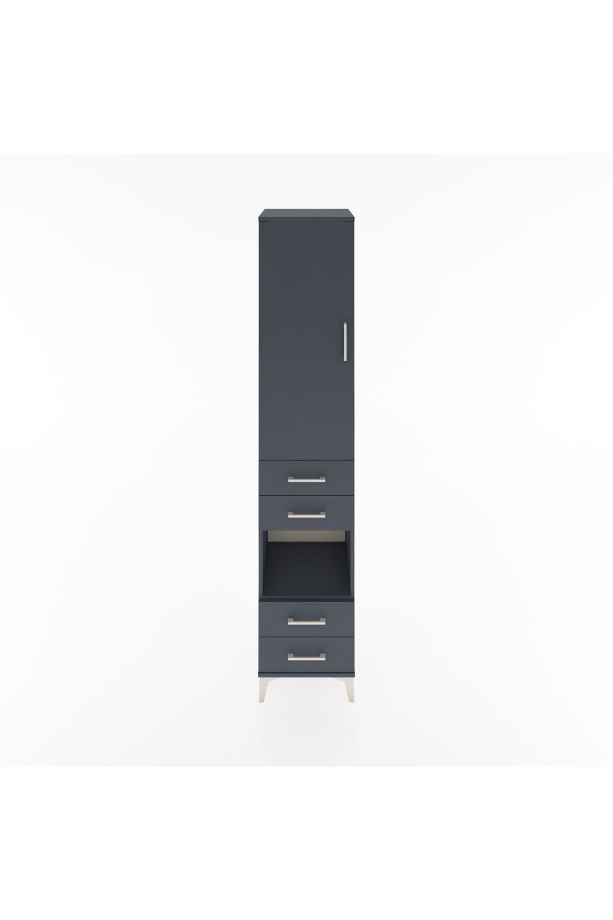 Hyperion Dolap 4 Raflı 4 Çekmeceli Tek Kapaklı 44x44x221 Antrasit-Antrasit
