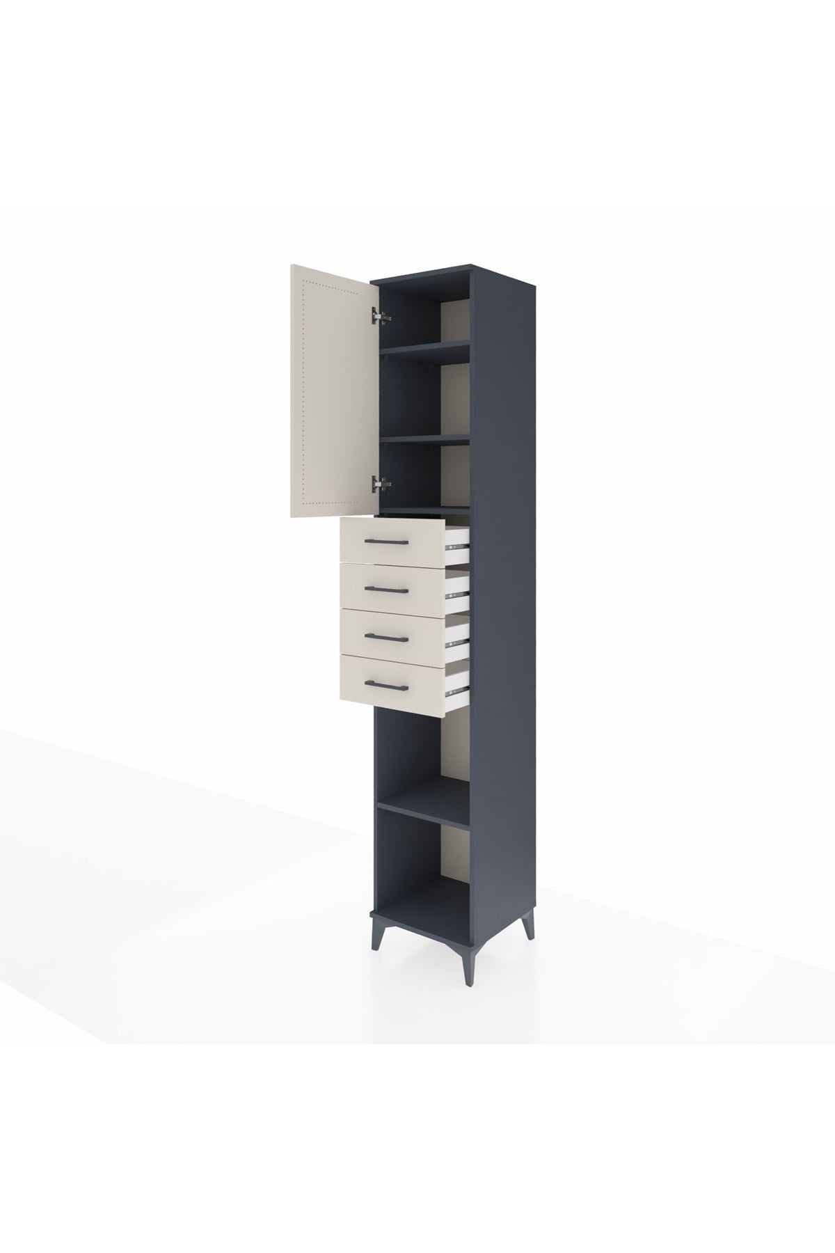 Hyperion Dolap 4 Raflı 4 Çekmeceli Tek Kapaklı 44x44x243 Antrasit-Aytaşı