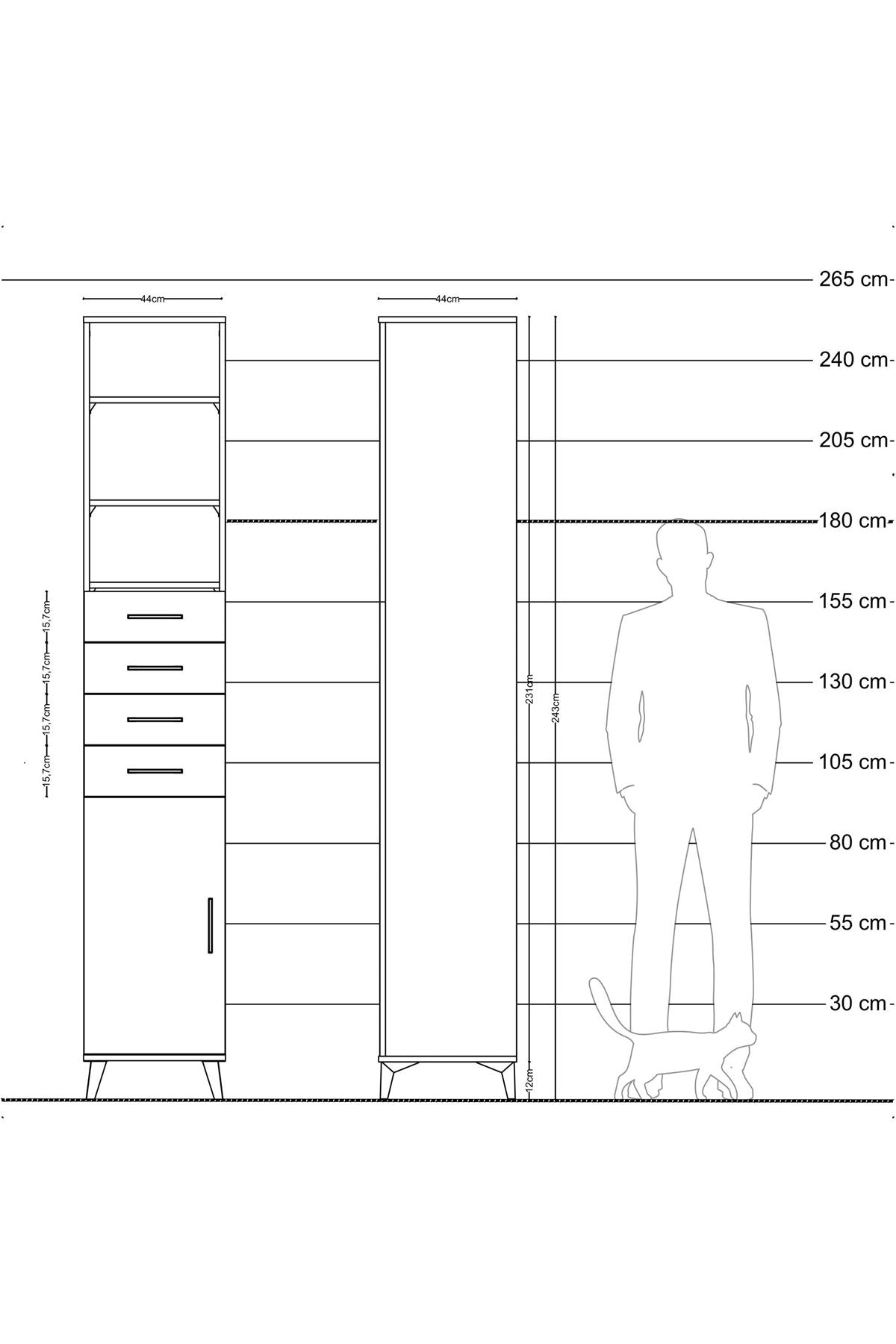 Hyperion Dolap 4 Raflı 4 Çekmeceli Tek Kapaklı 44x44x243 Aytaşı-Aytaşı
