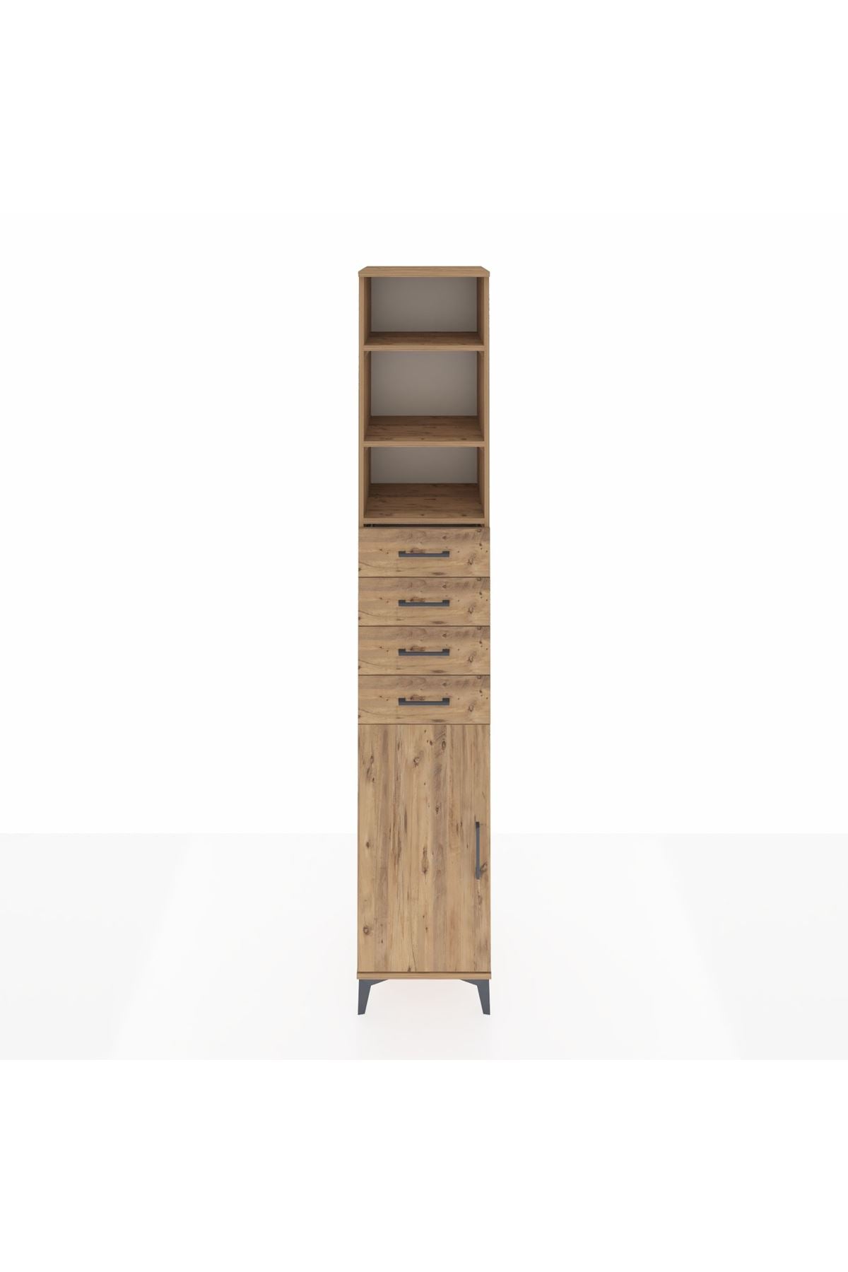 Hyperion Dolap 4 Raflı 4 Çekmeceli Tek Kapaklı 44x44x243 Çam-Çam