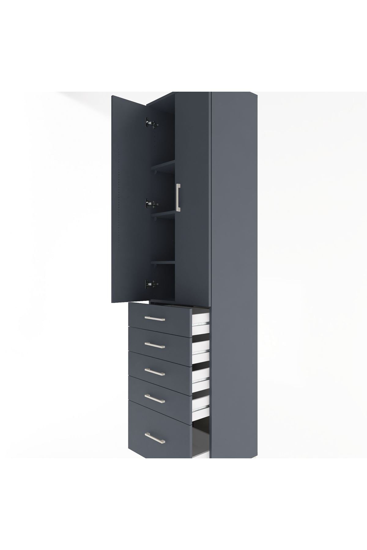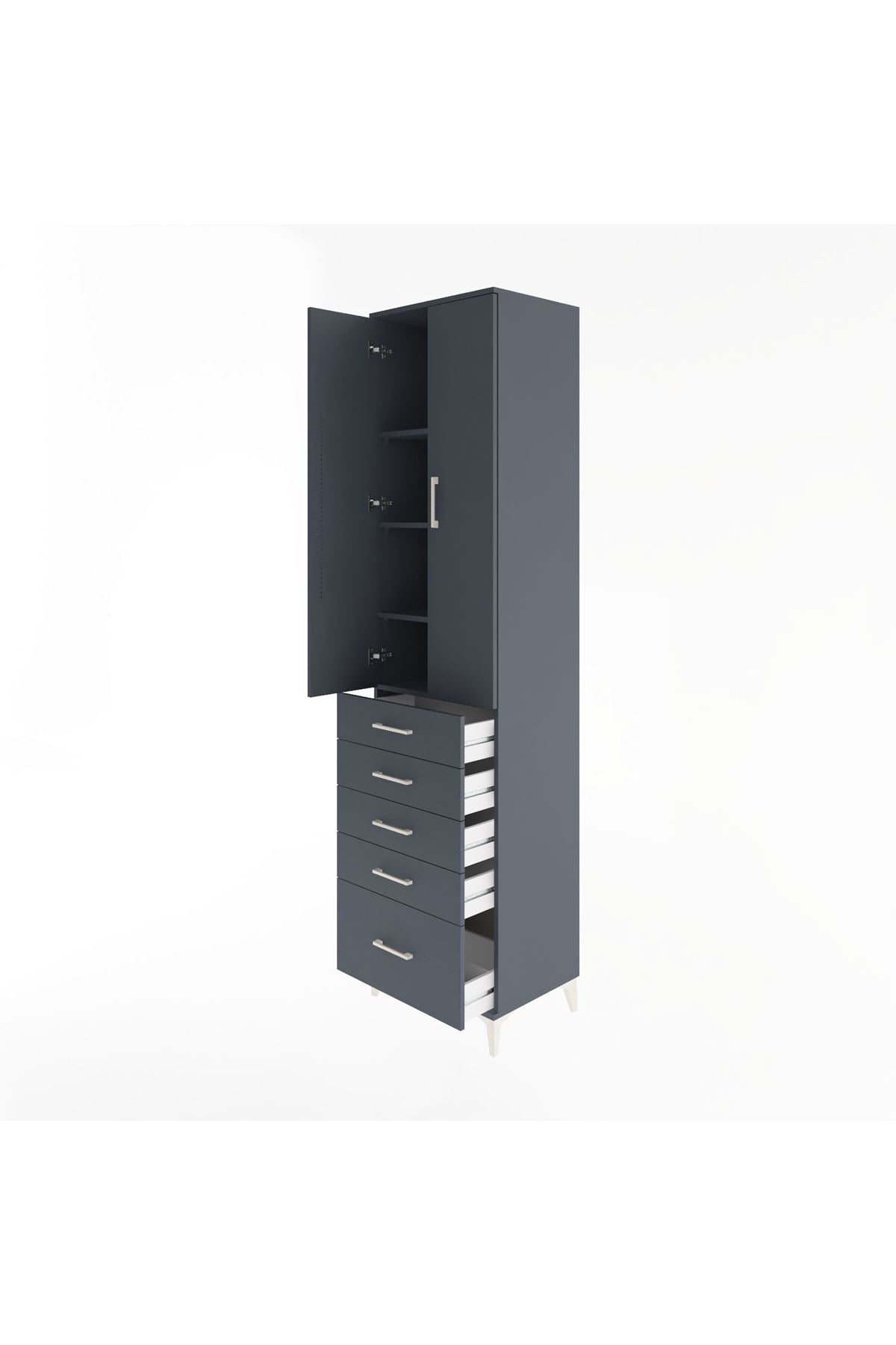 Hyperion Dolap 4 Raflı 5 Çekmeceli 2 Kapaklı 60x44x243 Antrasit-Antrasit