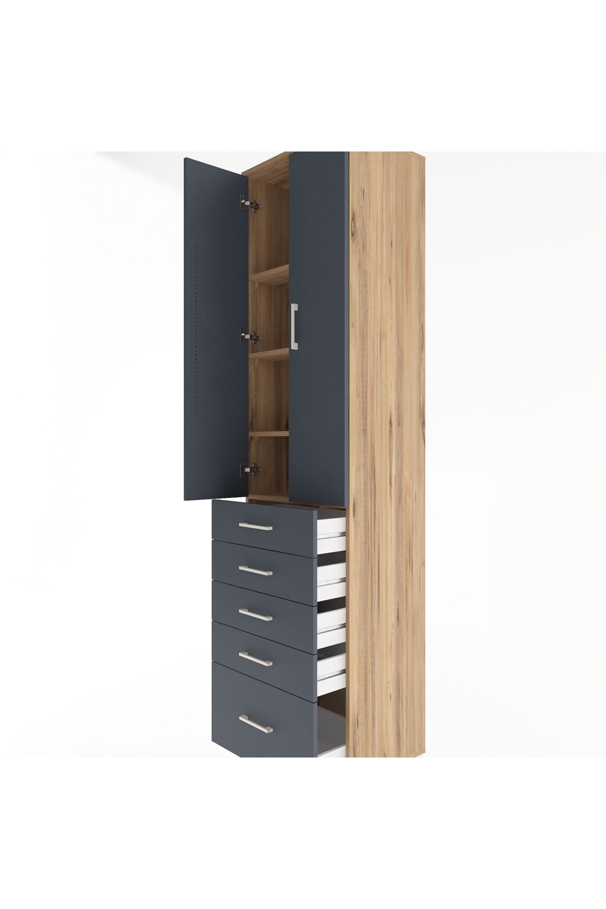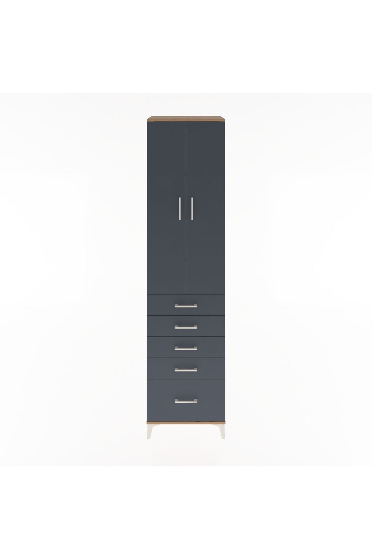 Hyperion Dolap 4 Raflı 5 Çekmeceli 2 Kapaklı 60x44x243 Çam-Antrasit