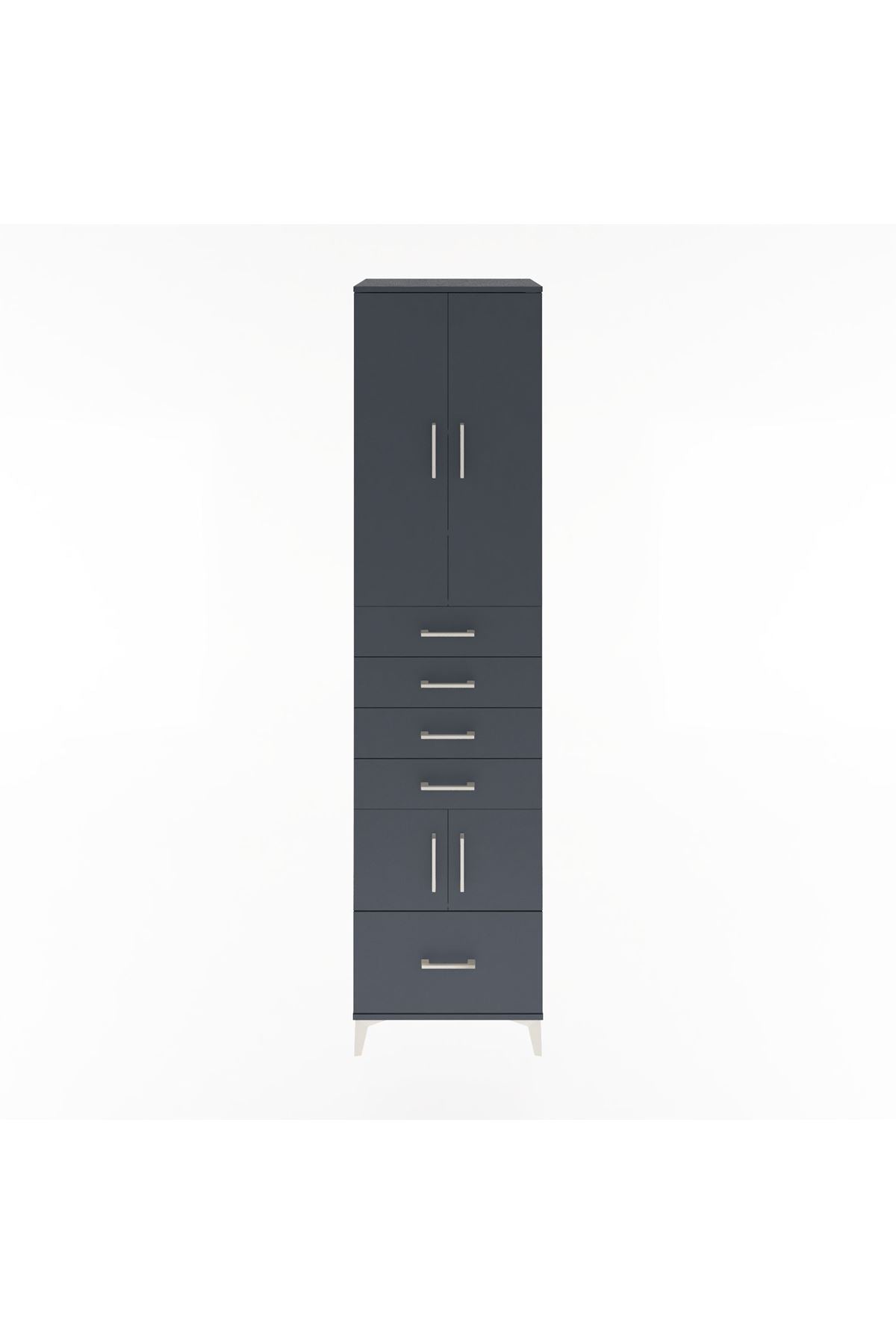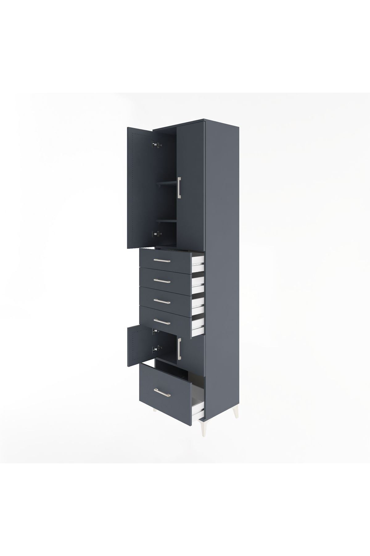 Hyperion Dolap 4 Raflı 5 Çekmeceli 4 Kapaklı 60x44x243 Antrasit-Antrasit