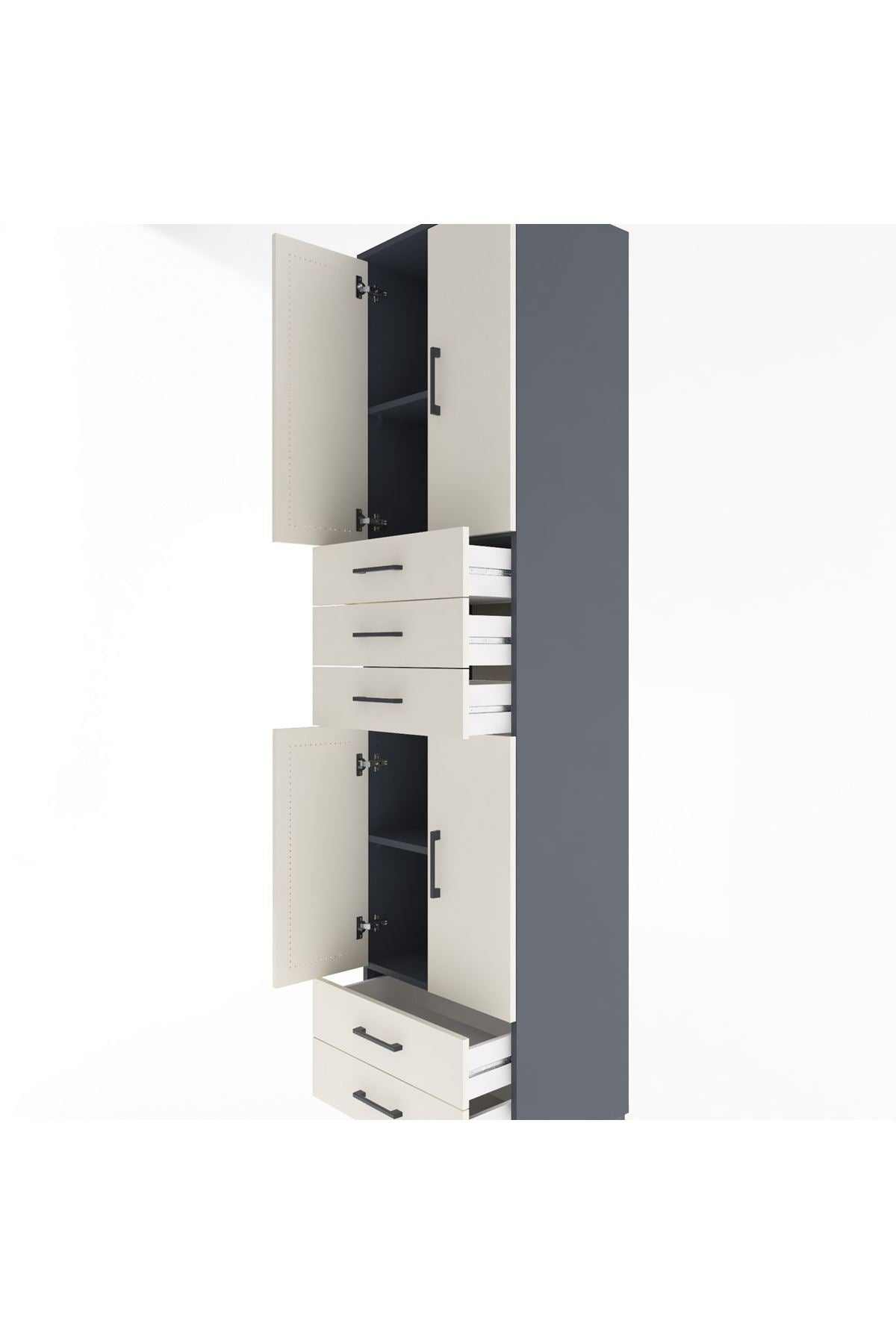 Hyperion Dolap 4 Raflı 5 Çekmeceli 4 Kapaklı 60x44x243 Antrasit-Aytaşı