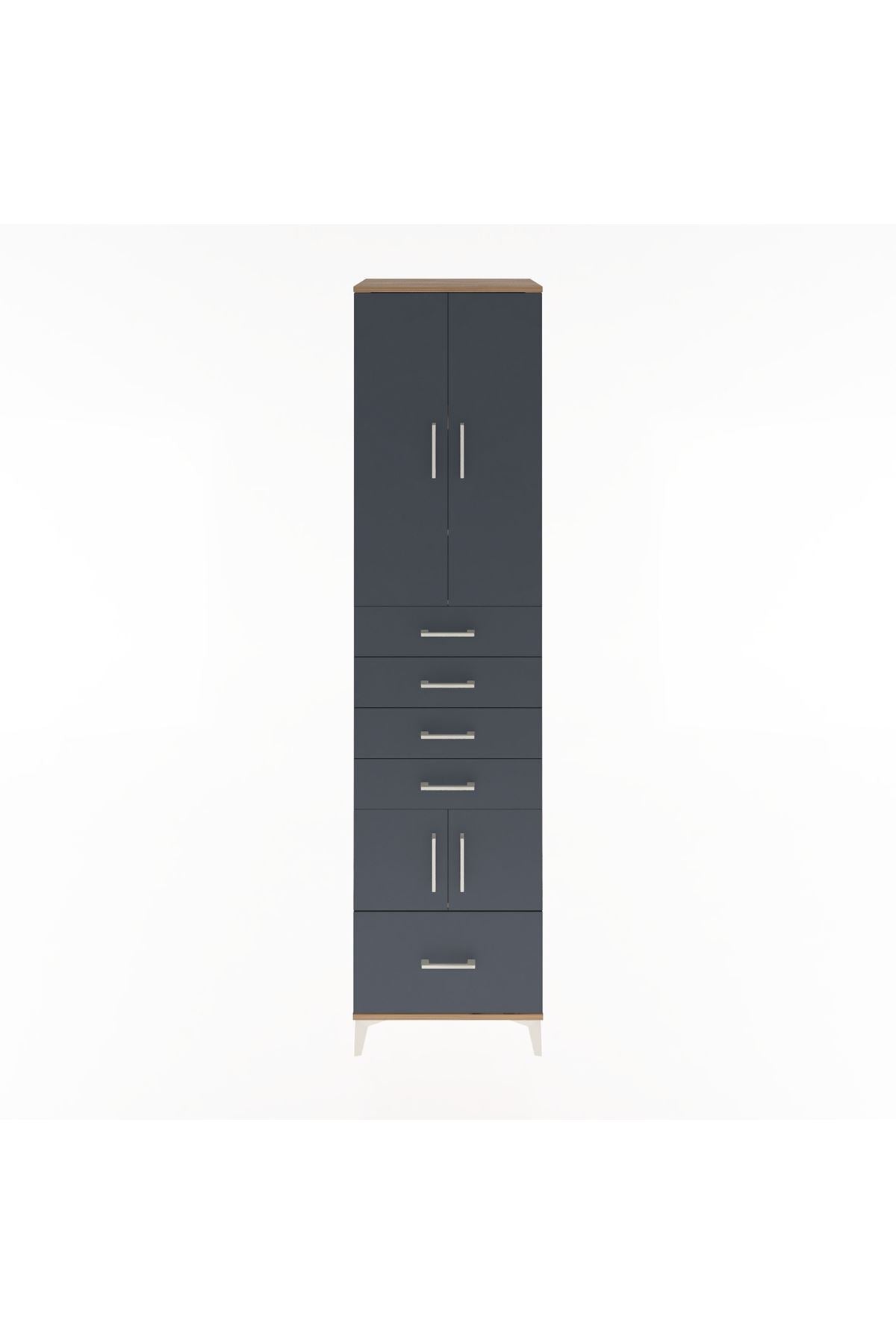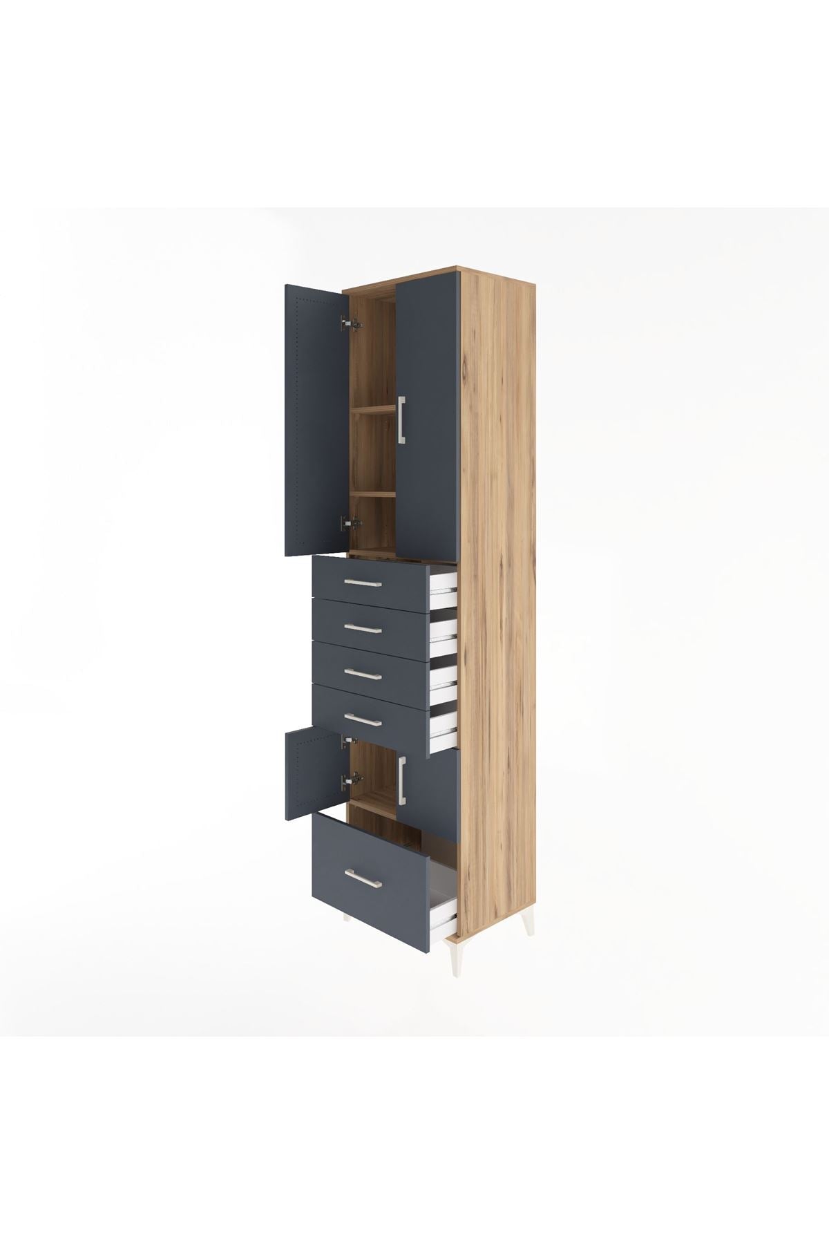 Hyperion Dolap 4 Raflı 5 Çekmeceli 4 Kapaklı 60x44x243 Çam-Antrasit