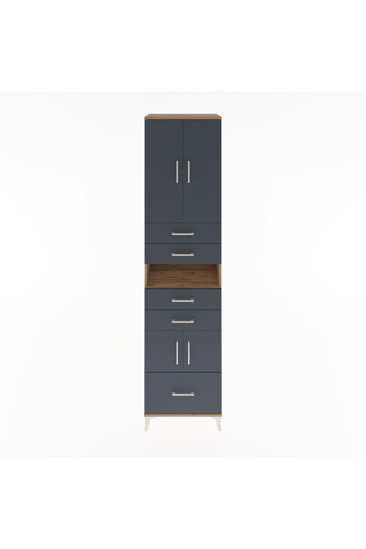 Hyperion Dolap 4 Raflı 5 Çekmeceli 4 Kapaklı 60x44x243 Çam-Antrasit