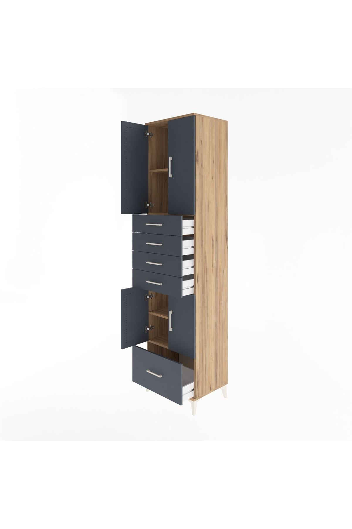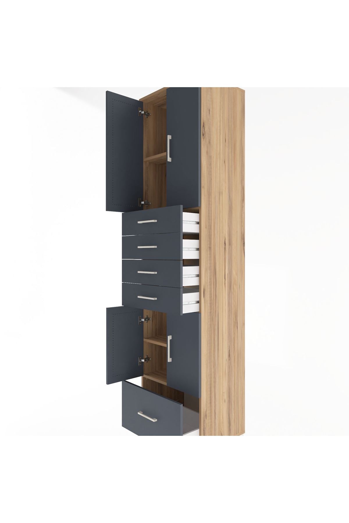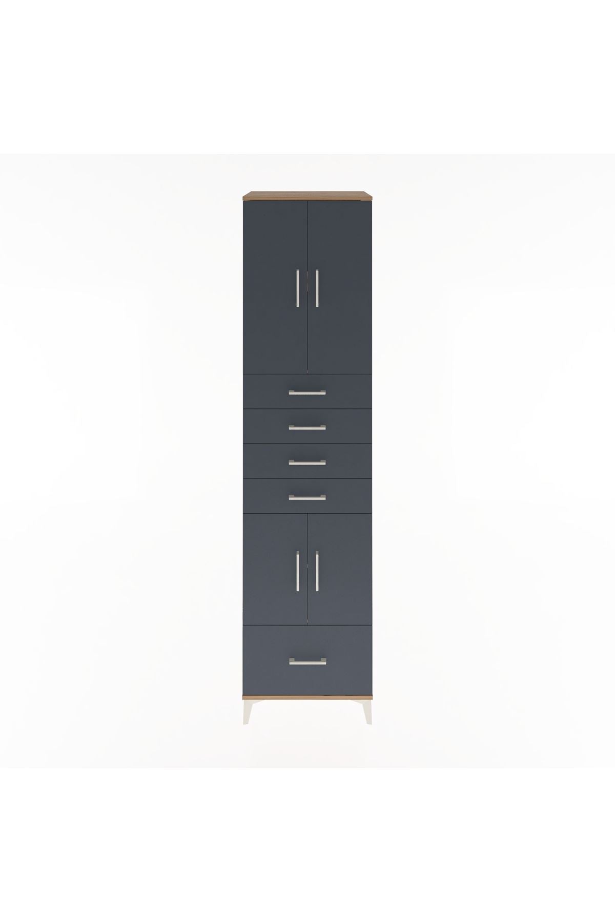 Hyperion Dolap 4 Raflı 5 Çekmeceli 4 Kapaklı 60x44x243 Çam-Antrasit