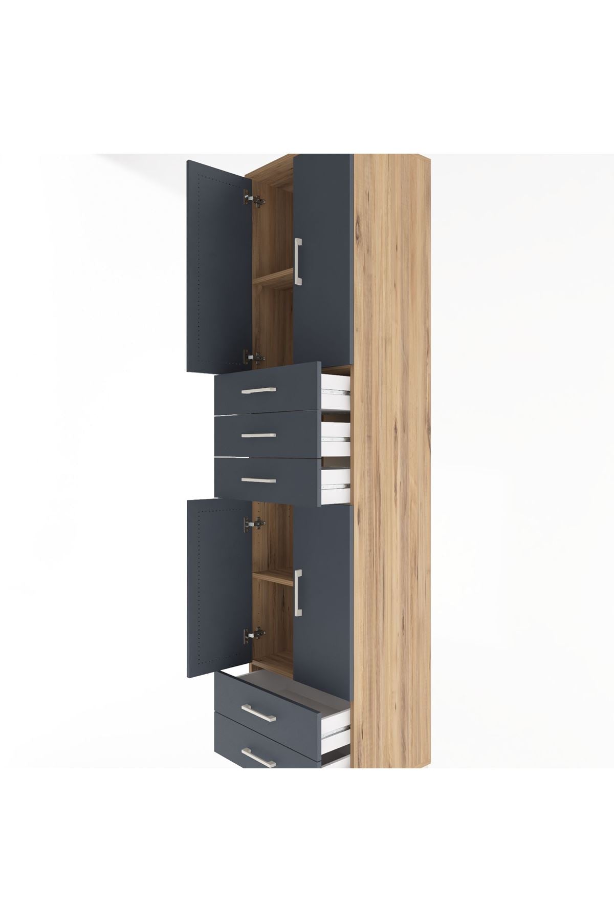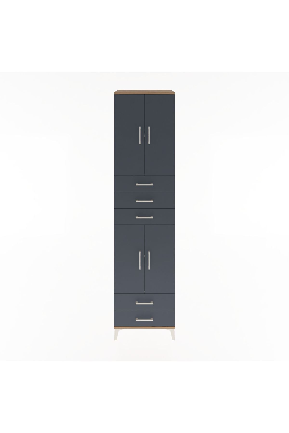 Hyperion Dolap 4 Raflı 5 Çekmeceli 4 Kapaklı 60x44x243 Çam-Antrasit