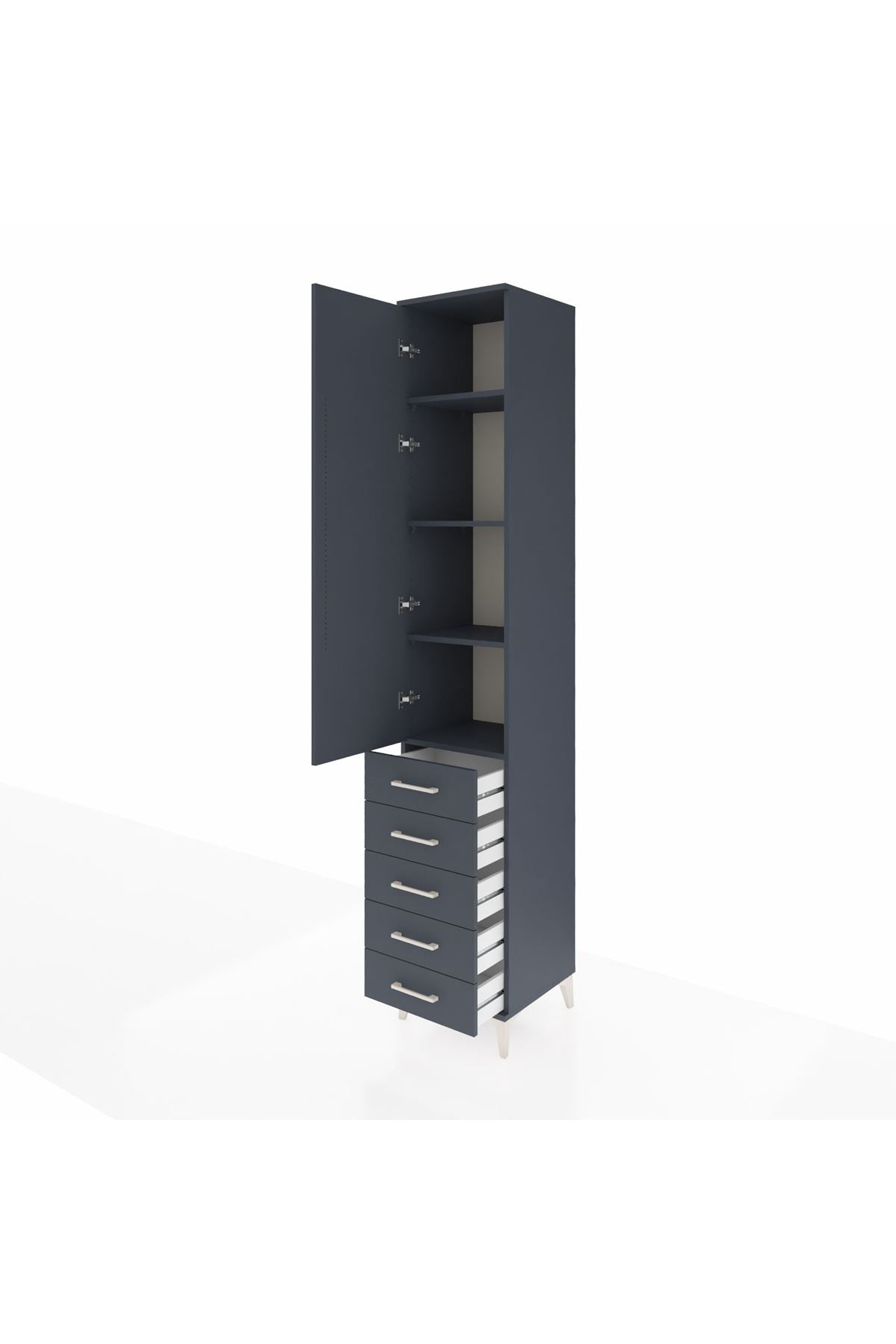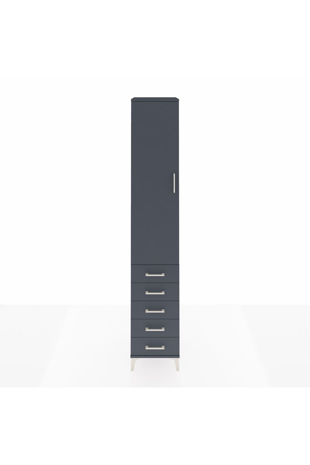 Hyperion Dolap 4 Raflı 5 Çekmeceli Tek Kapaklı 44x44x243 Antrasit-Antrasit
