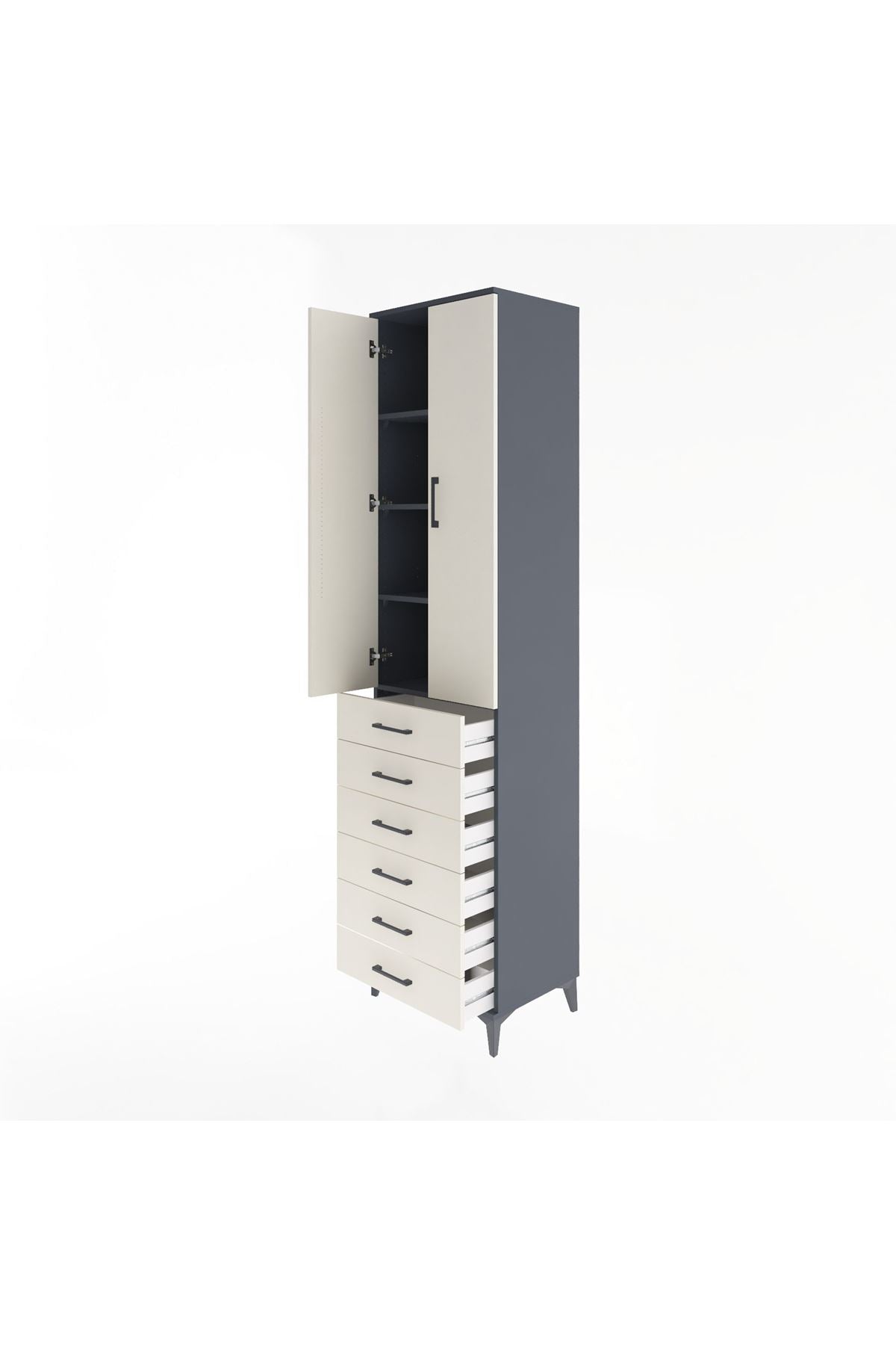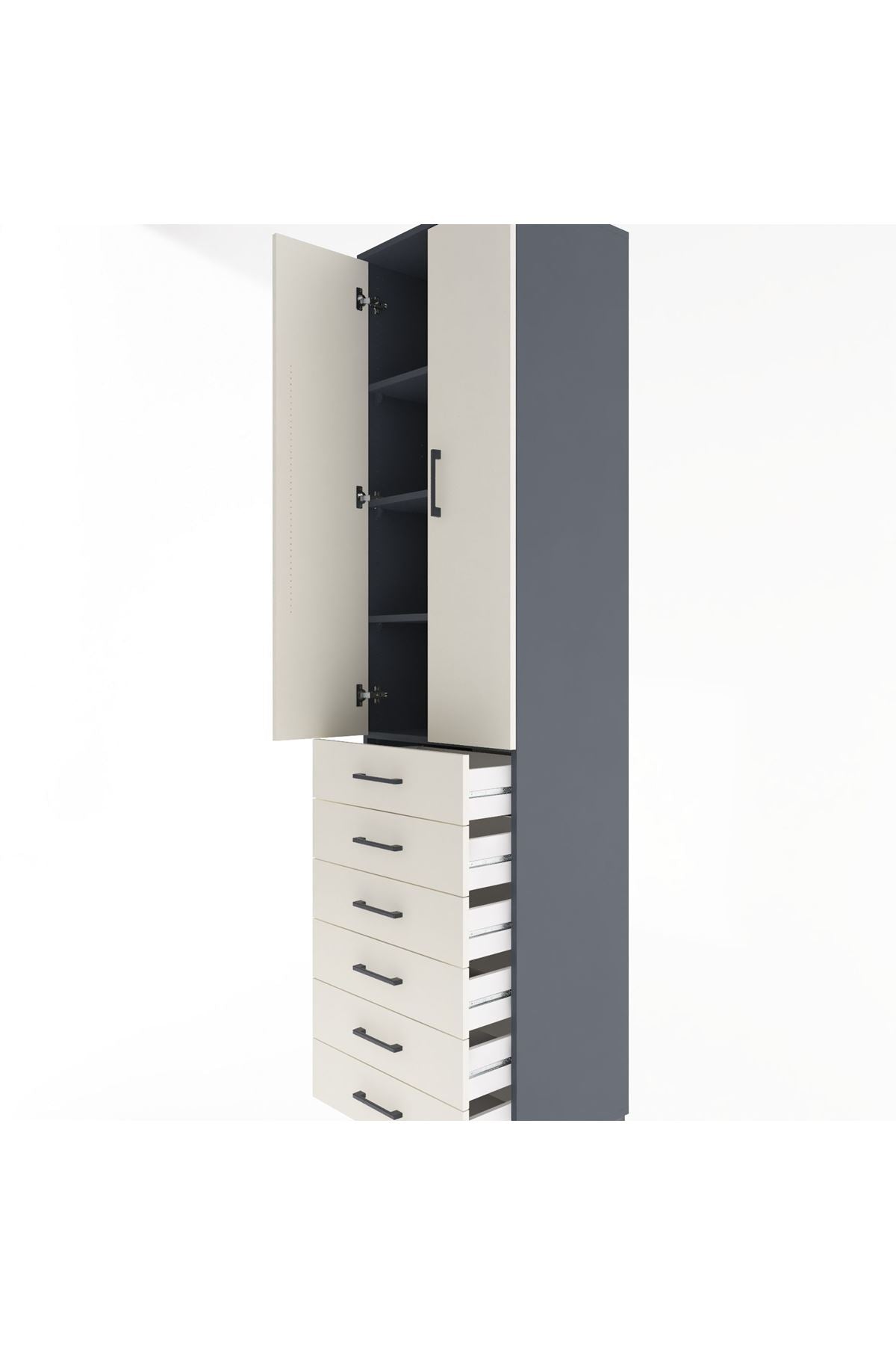 Hyperion Dolap 4 Raflı 6 Çekmeceli 2 Kapaklı 60x44x243 Antrasit-Aytaşı
