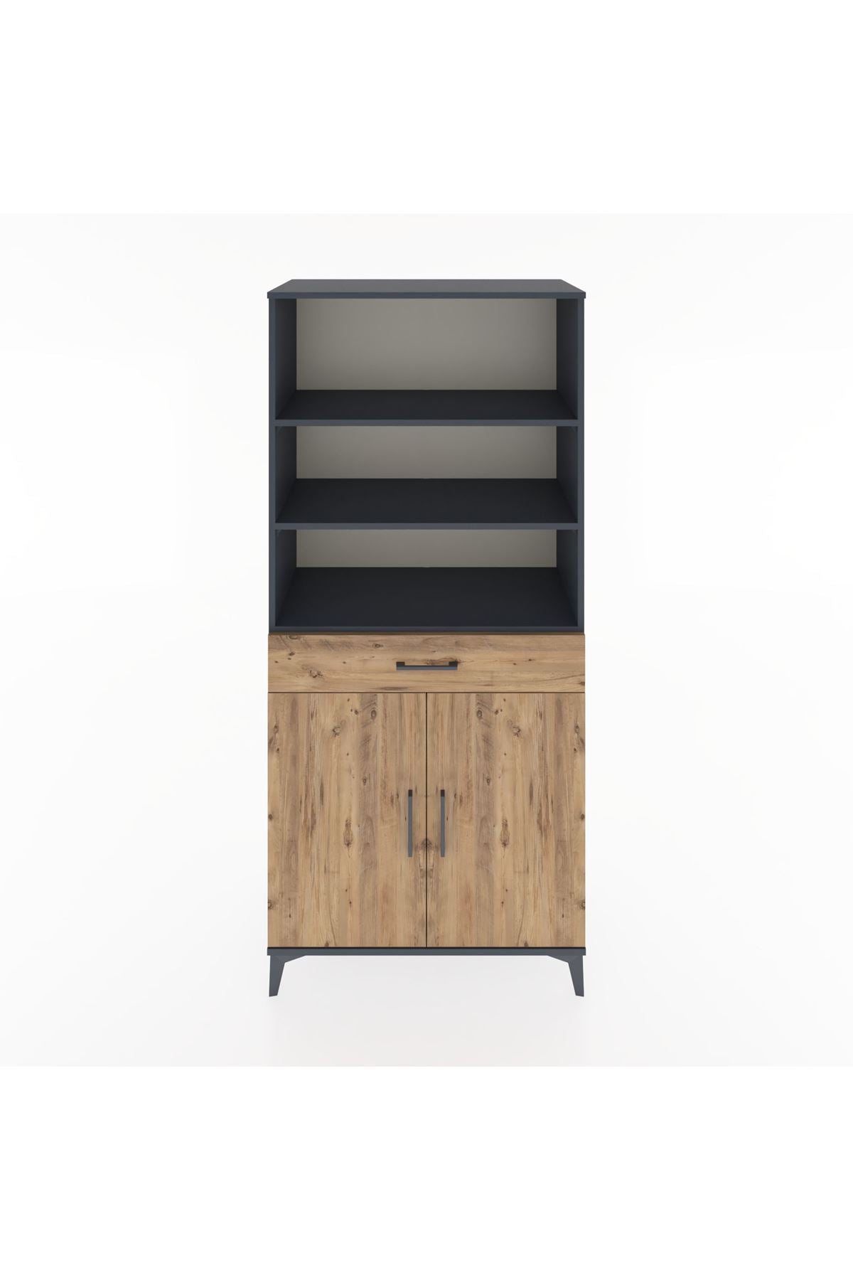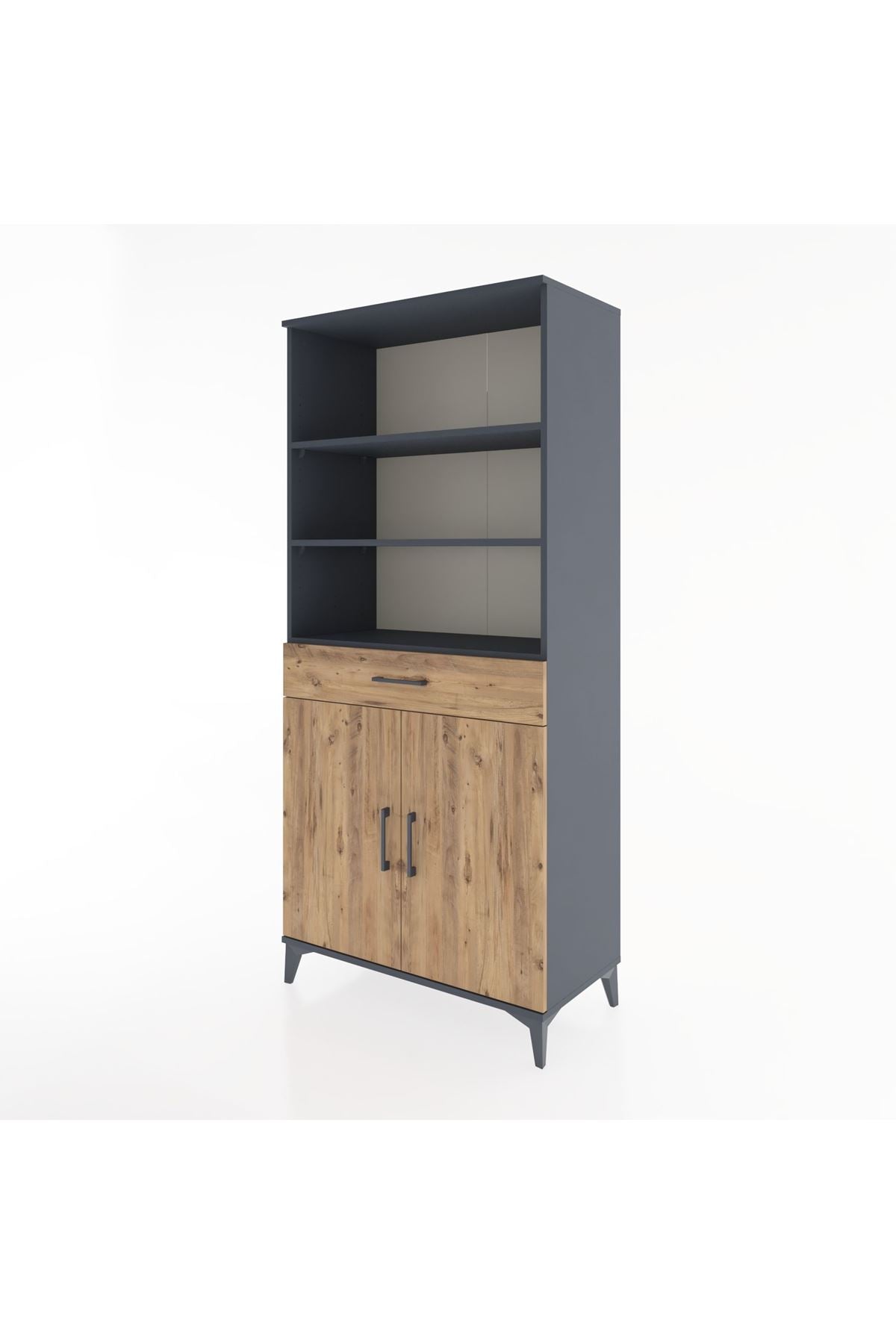 Hyperion Dolap 4 Raflı Tek Çekmeceli 2 Kapaklı 88x44x195 Antrasit-Çam