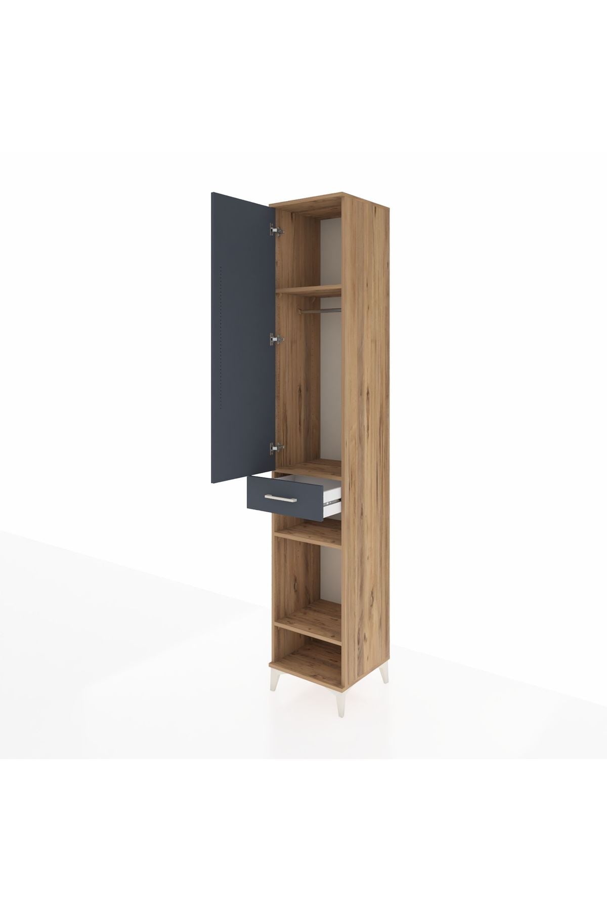 Hyperion Dolap 4 Raflı Tek Çekmeceli Tek Askılı 44x44x243 Çam-Antrasit