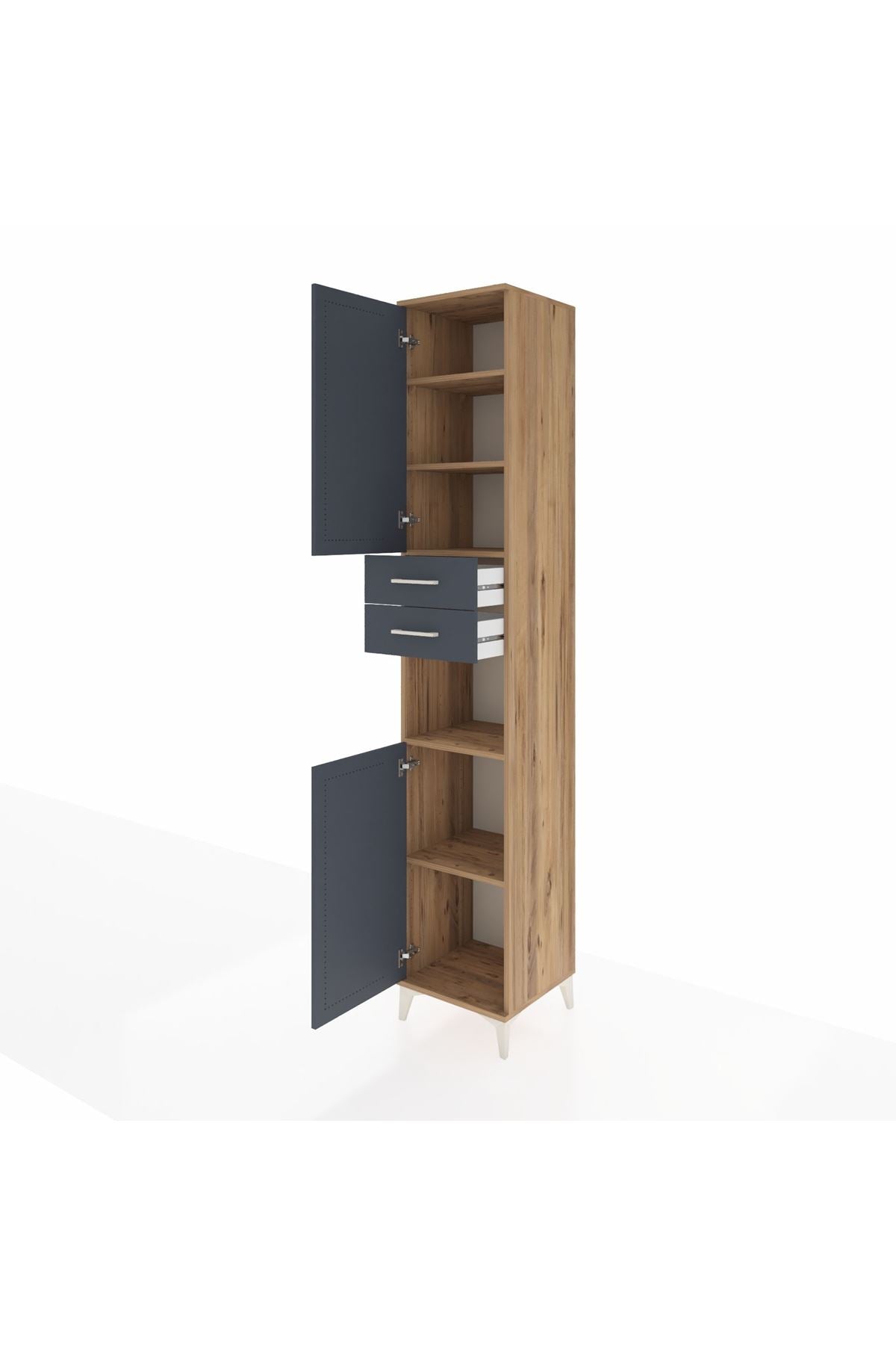 Hyperion Dolap 5 Raflı 2 Çekmeceli 2 Kapaklı 44x44x243 Çam-Antrasit