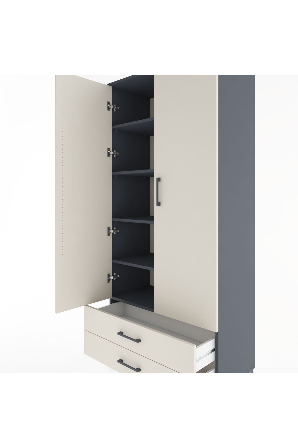 Hyperion Dolap 5 Raflı 2 Çekmeceli 2 Kapaklı 88x44x195 Antrasit-Aytaşı